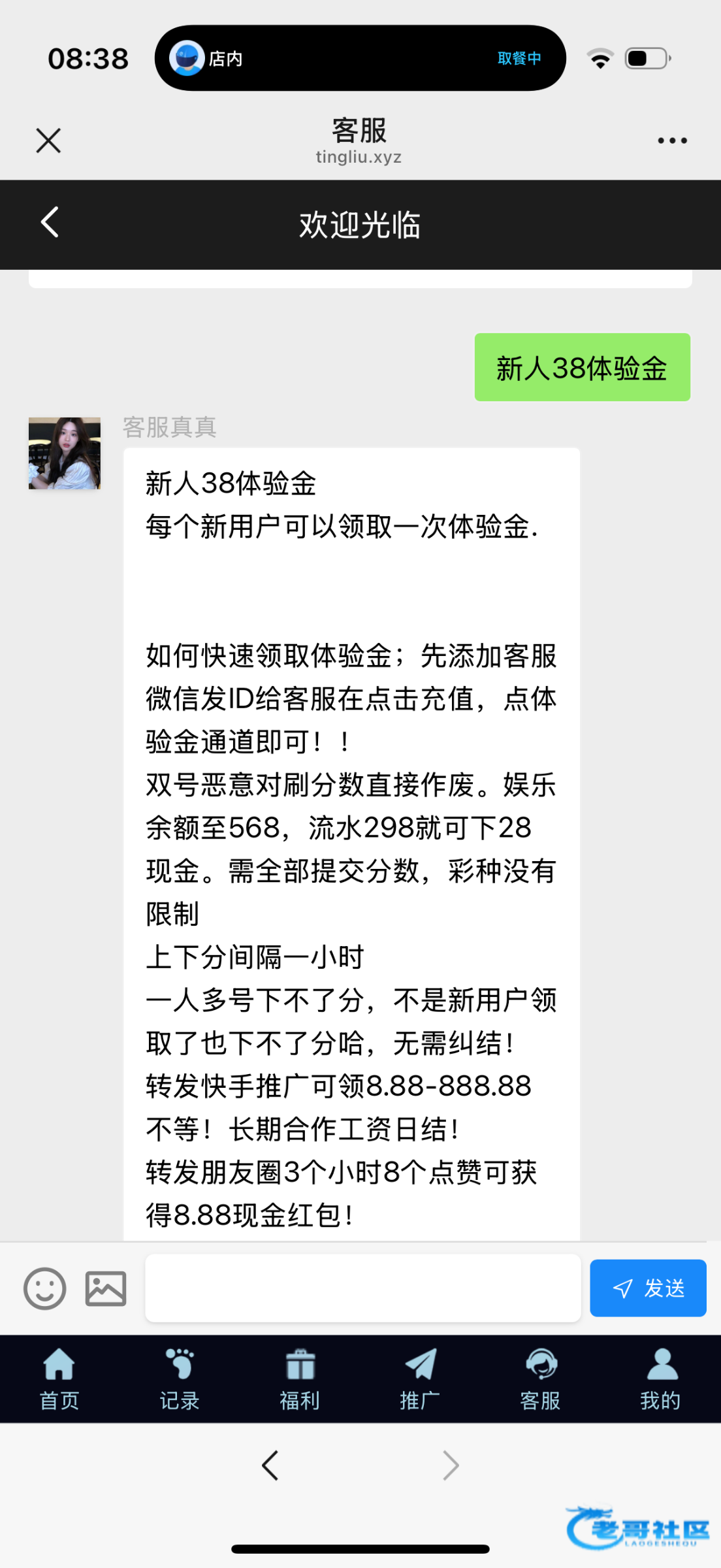 复活,又开始送了,微信扫码,需要自己手动注册一个账号,注意不能微信登入,登入进去找在线客服加V,点击充值那里手动领取38体验金
