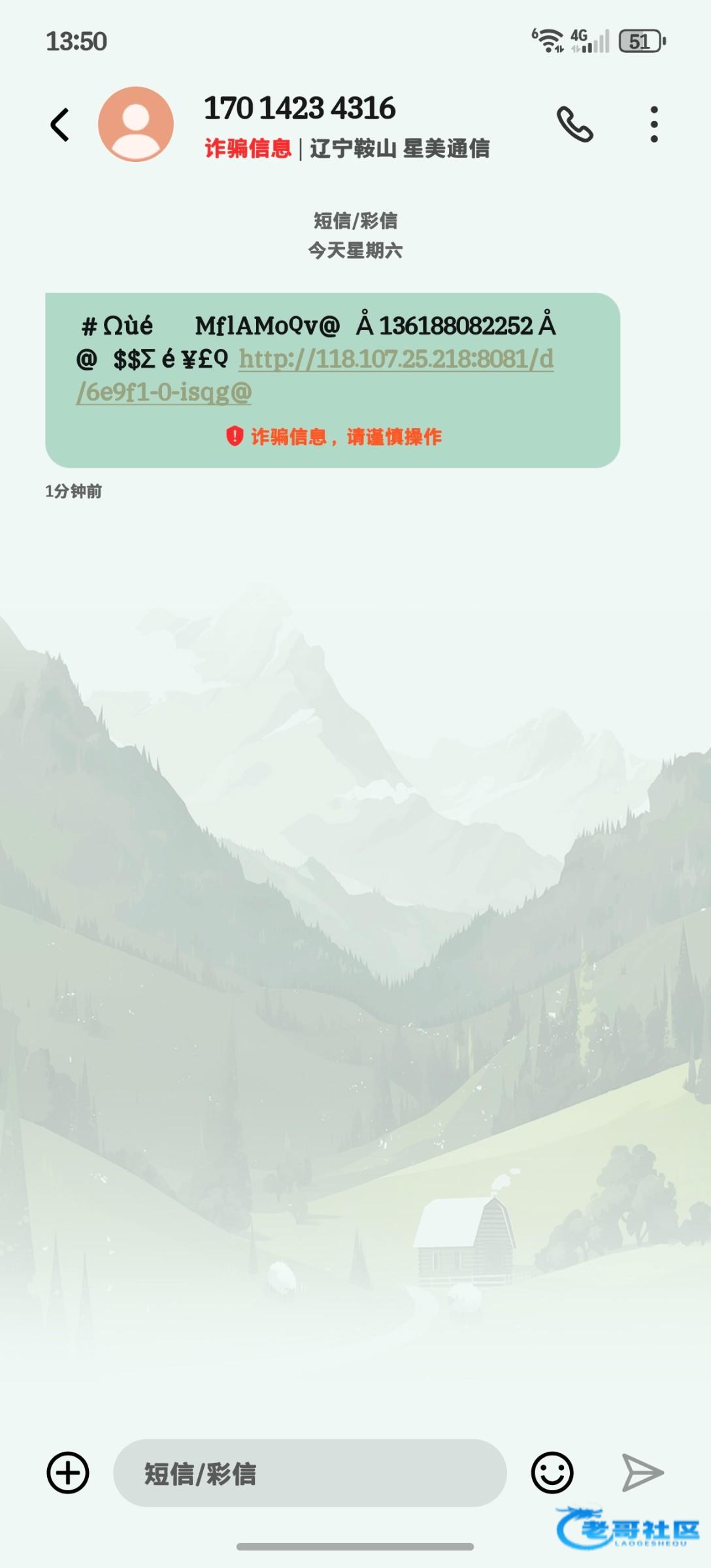 老哥们 老是收到这种短信 到底是什么意思 链接点开显示无法在本机安装 那串号码也搜不到