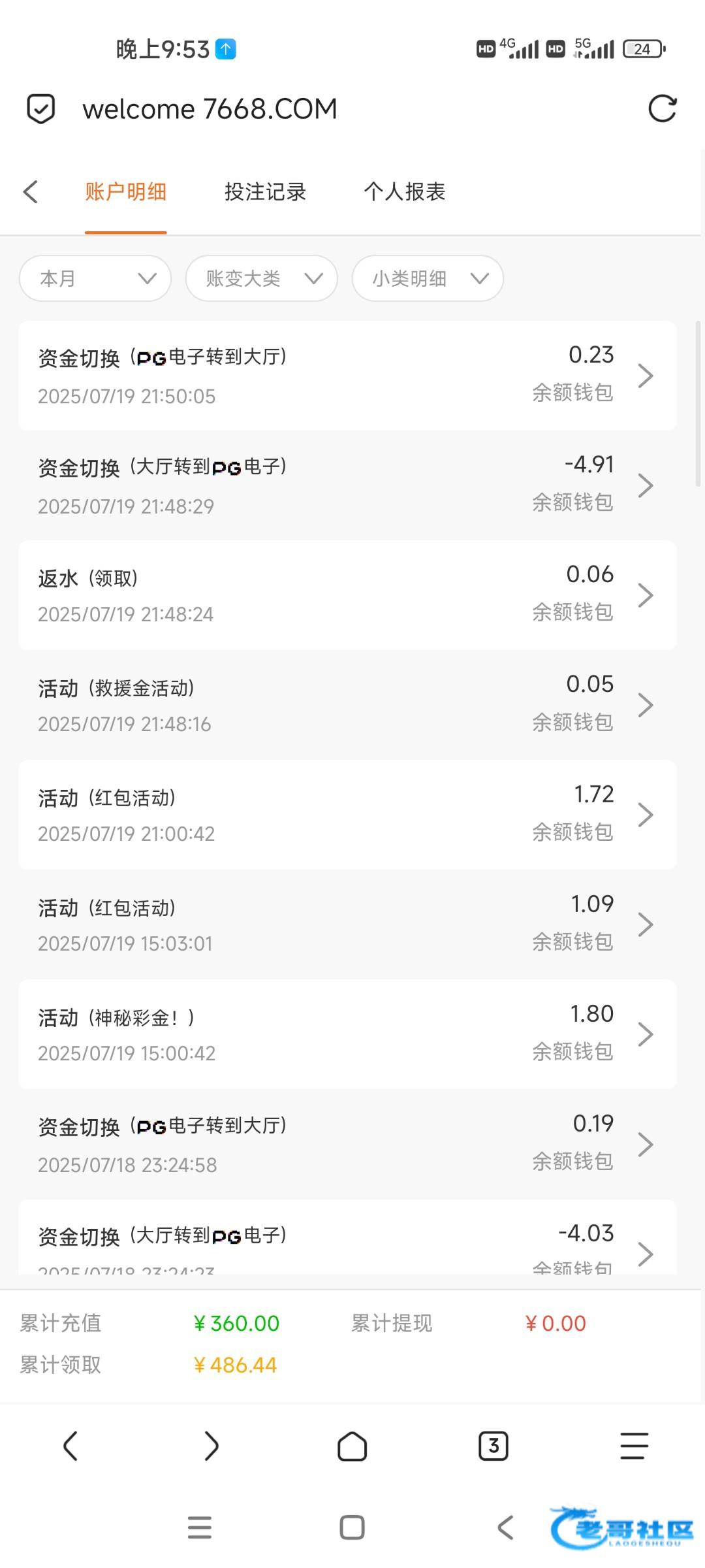 已经成黑台子了,我已经v3了前几天充值200提现100说我套利封号了。