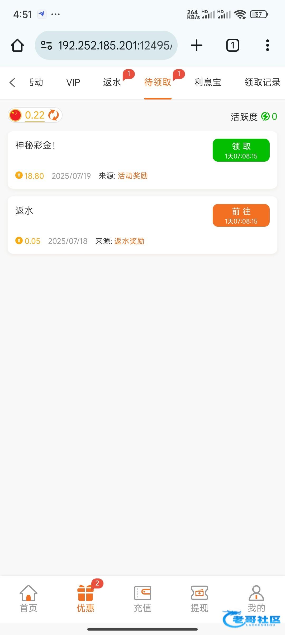 送了1.8提了30不知道能不能到之前特邀出了500秒到的只充值过20