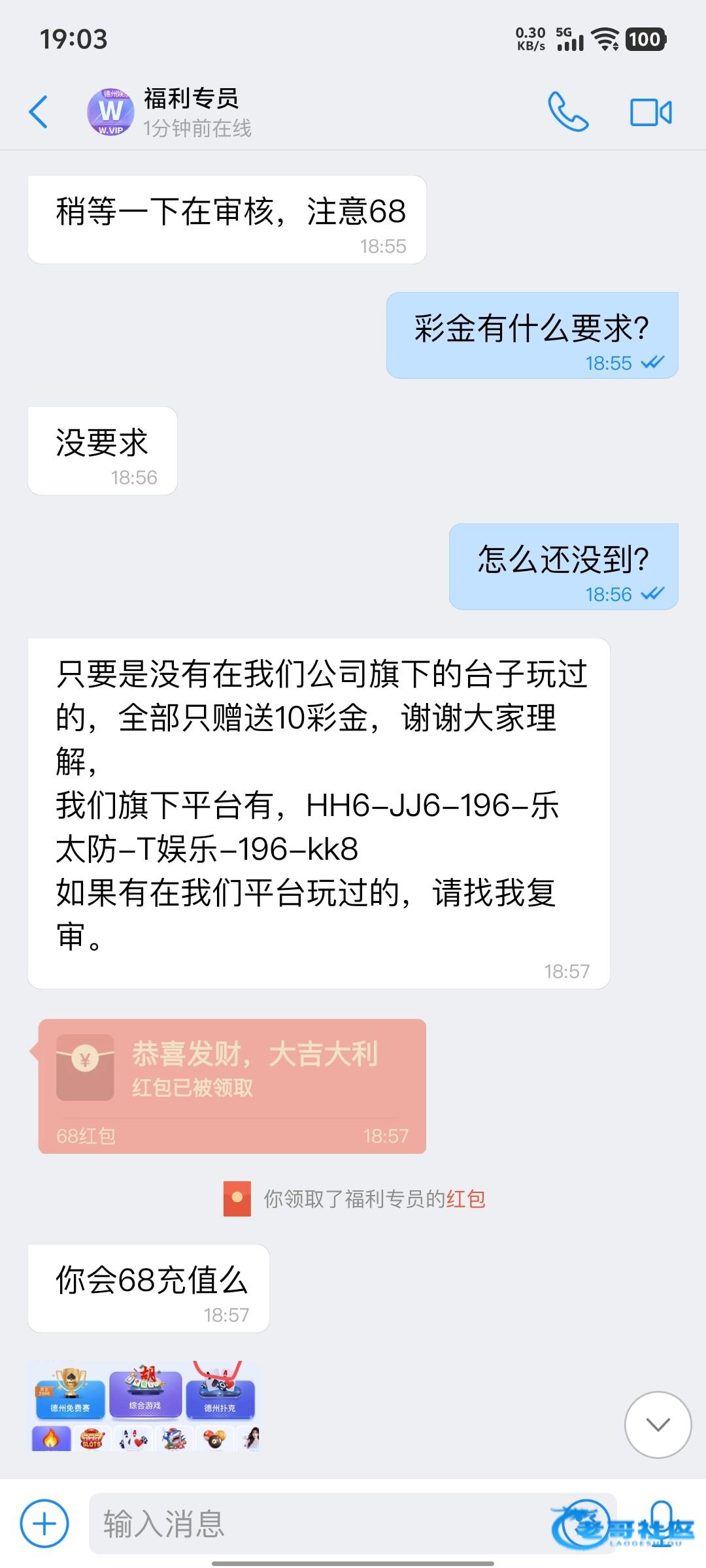 强强强 ▶ 君子 你跟他说领十元彩金呀,别人推荐过来的 6月前