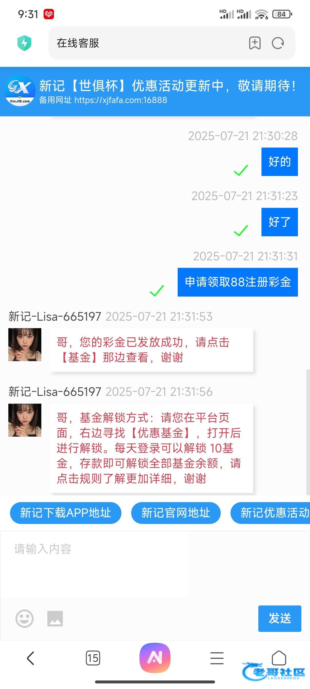 打电话说送88,真送了但要分9天领取,白嫖即可,切勿充值网址18159.vip