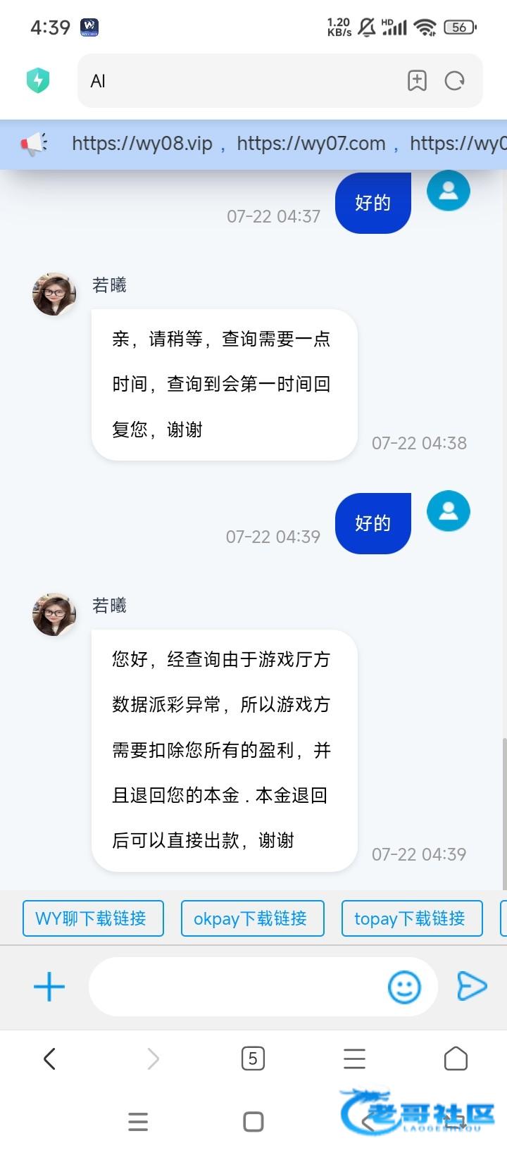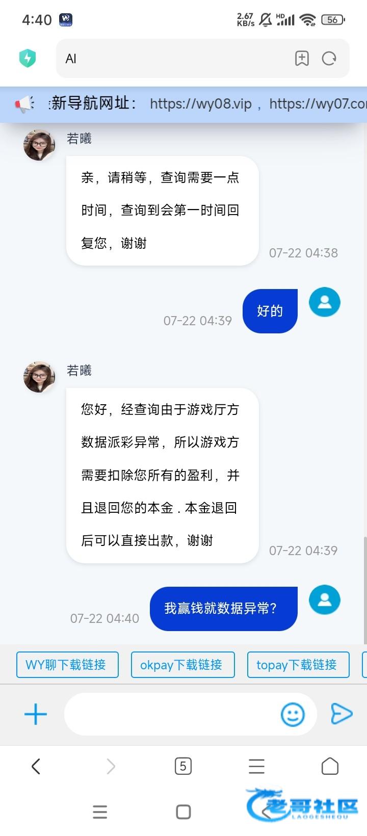 申请了午夜狂欢,玩了个存送,连续输了半个多月,终于赢了一次,谁知道一直没到账,问了客服,说数据异常,我爆浆赢了就数据异常,平常输得时候你们怎么不数据异常退回给我,然后再群里发言,竟然把客服给我的话就撤回,就留个爆浆图片,还直接禁言。割韭菜的平