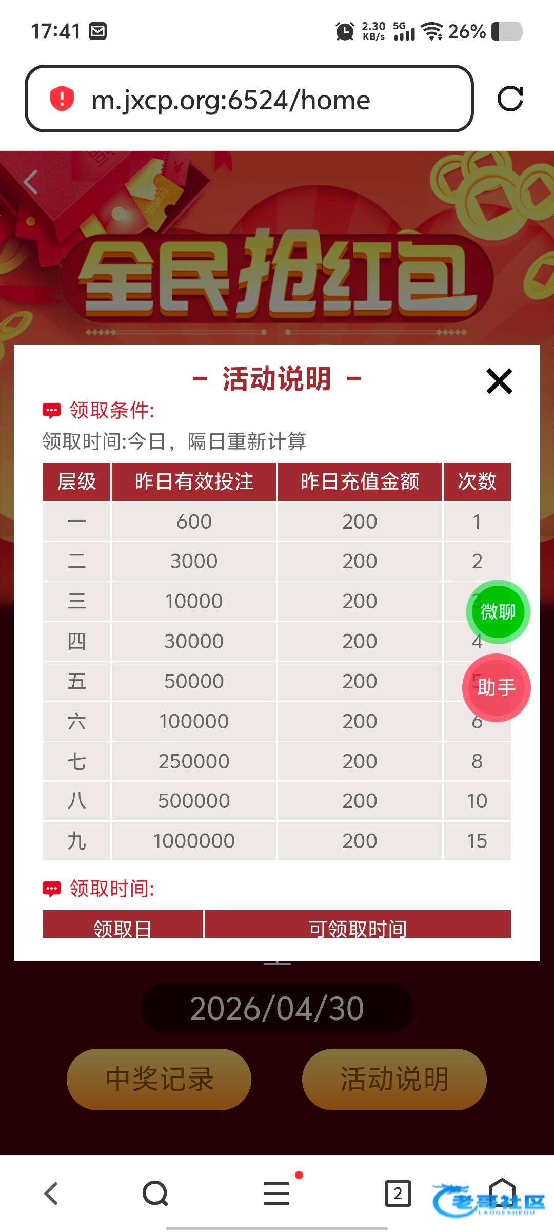 历史充值100以上,每天签到有3块。还有个红包每天可以领七八毛。 jxcp.org