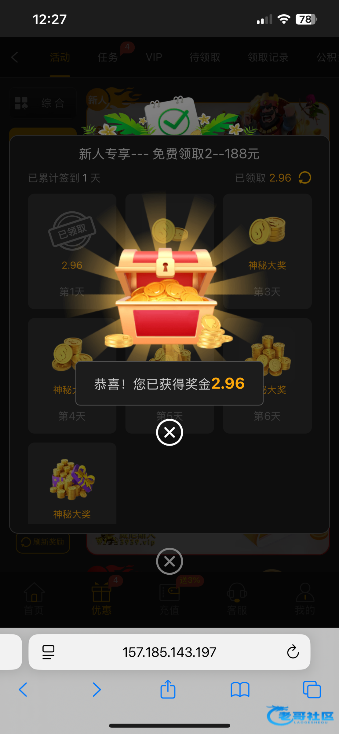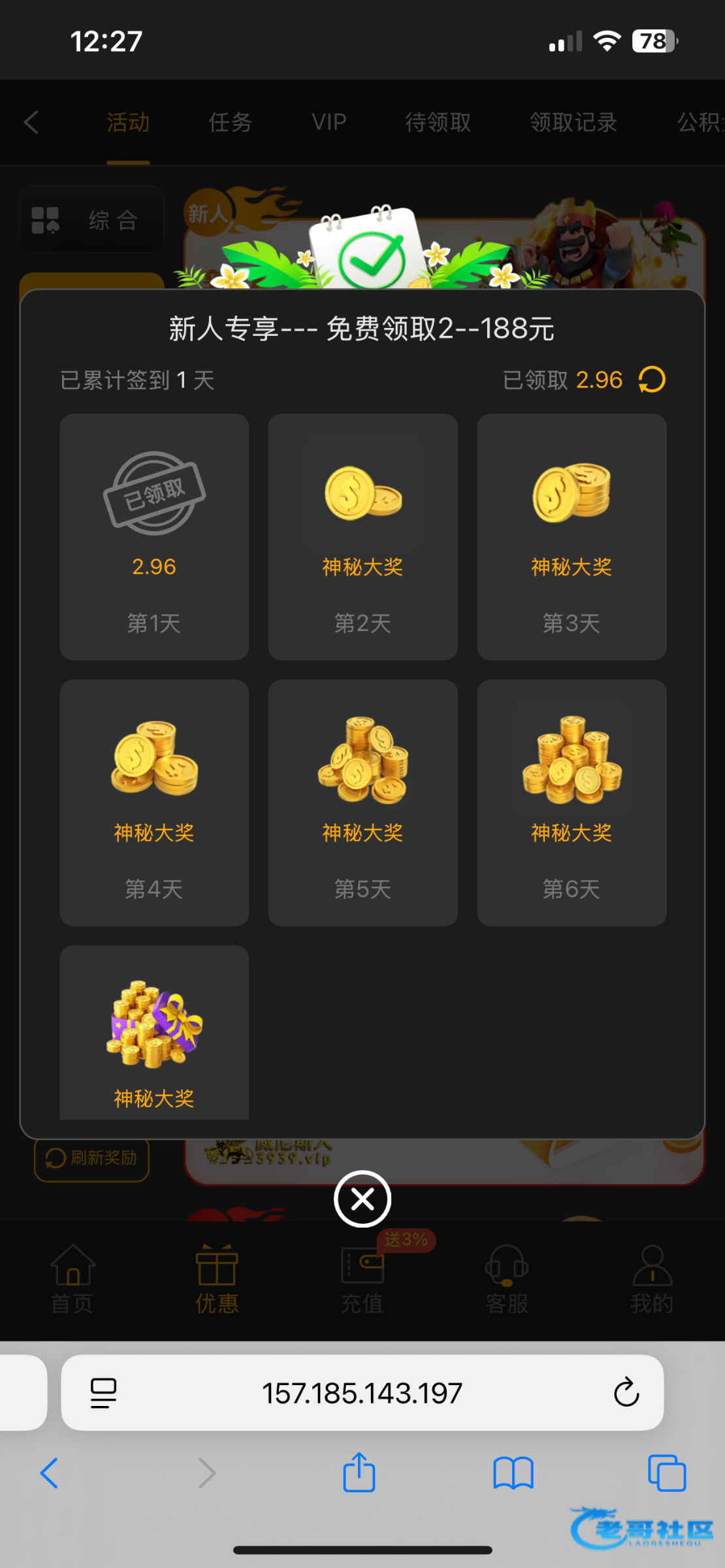 绑定银行卡就可以签到,可惜我绑了虚拟币,没充值不可以绑定第2个账户