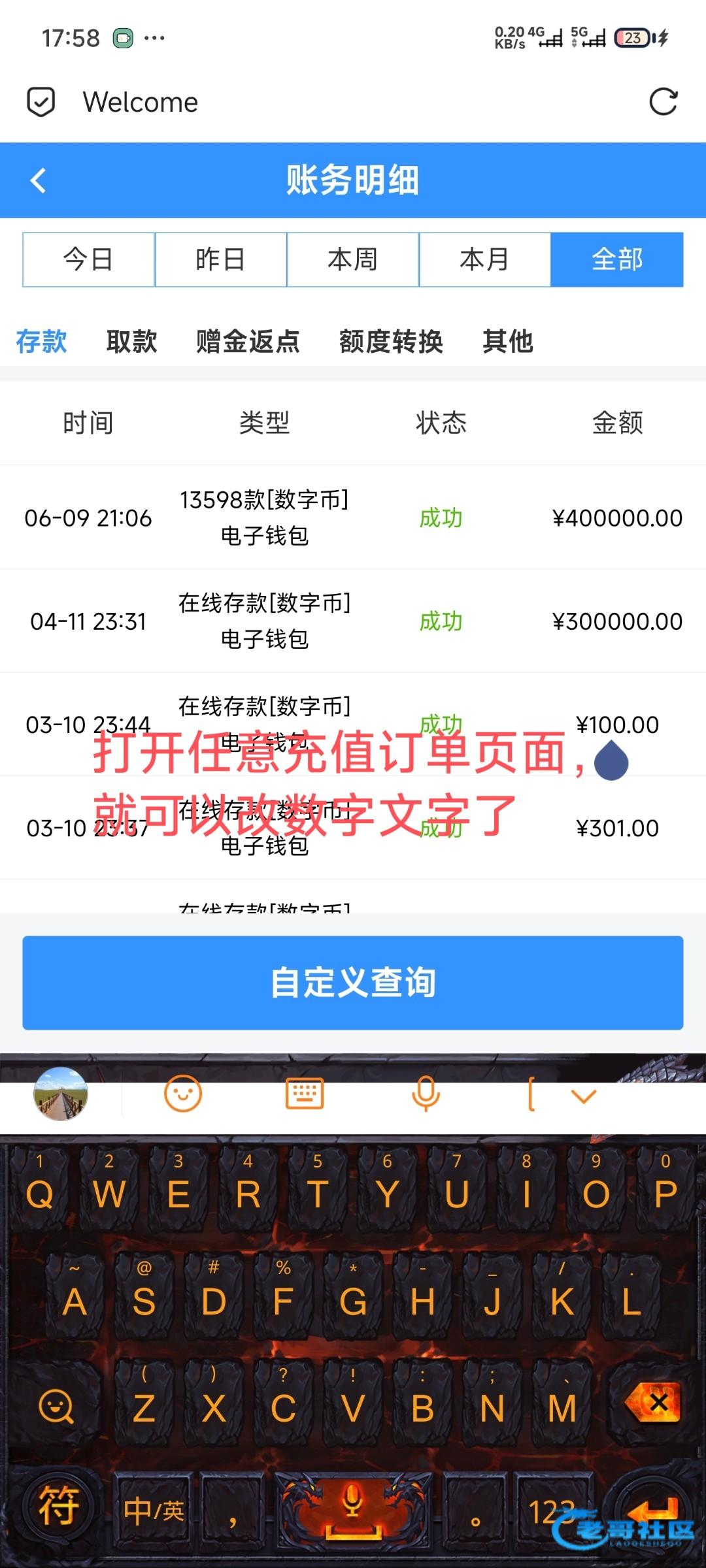 保存之后打开任意软件的充值订单页面,就可以改日期,订单,金额这些了,拿来撸那些要充值记录截图的用得上