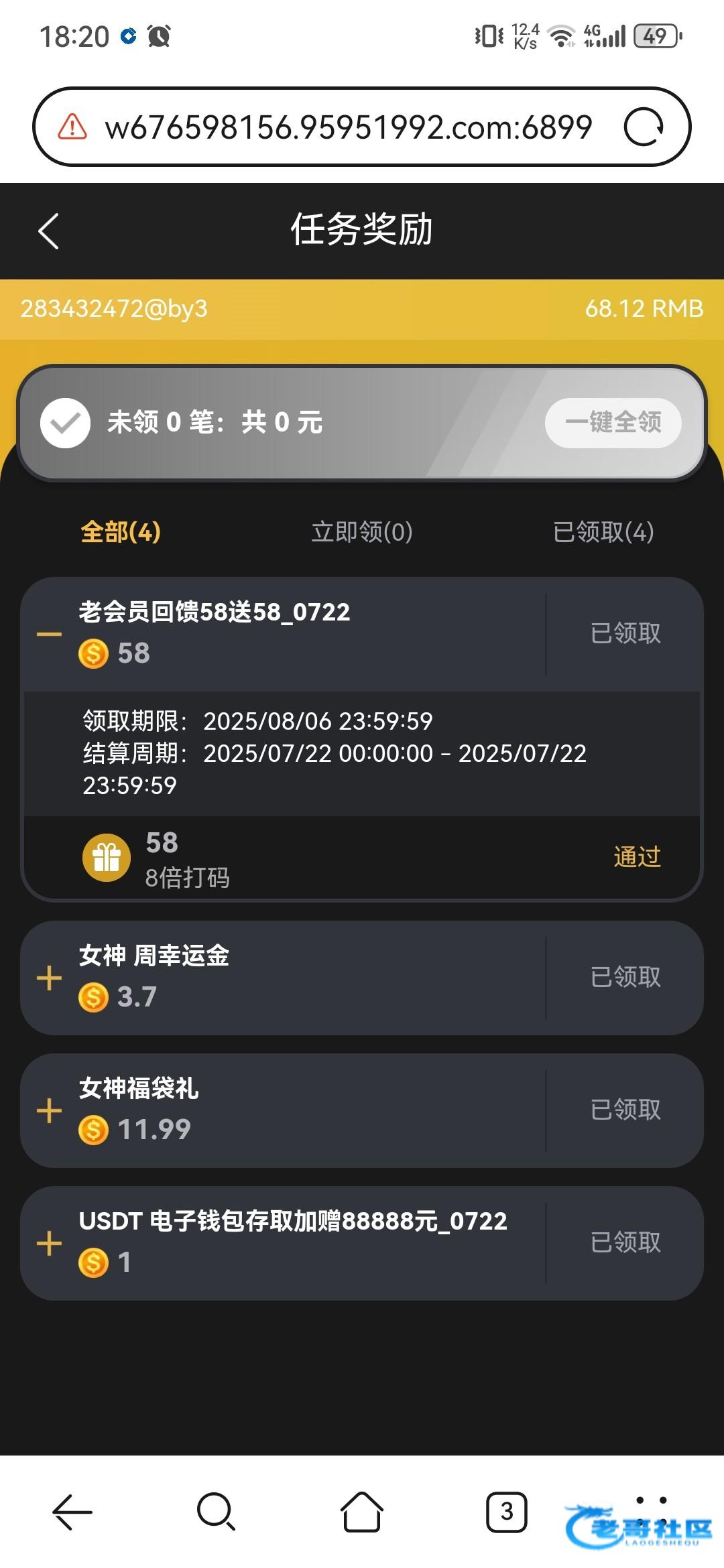 这是昨天充值58+打够500流水送的,