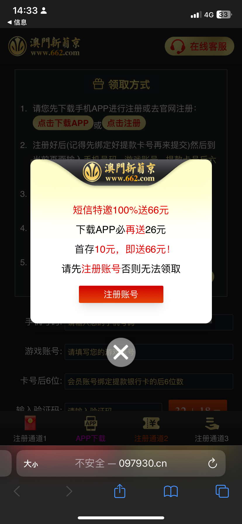 新普京662又发短信了 是原账号领取还是新注册账号 不知道怎么弄