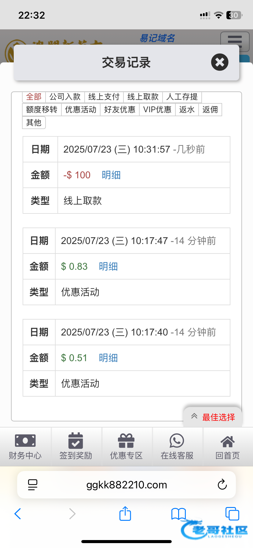 黑台子,我第一次首冲100玩的提300告诉我只能提188,第二次黑了我100卡密,第三次冲100提400说我片区ip 套利给我黑了,最后一次打电话送了18提100让我冲同等金额,玩个鸡儿这台子