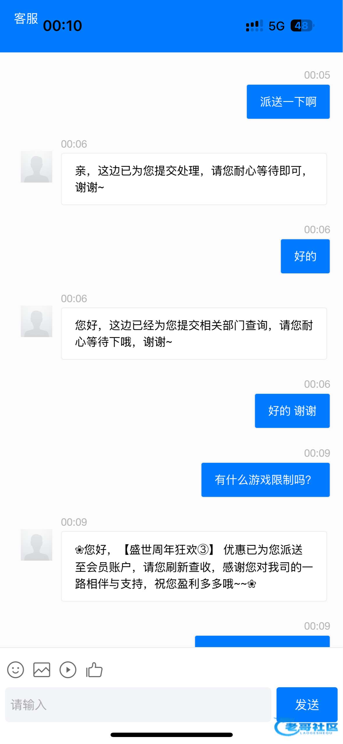 gw010405 ▶ 国际-UU 送呢 我刚申请的等了十几分钟不要退出客服就送了 6月前
