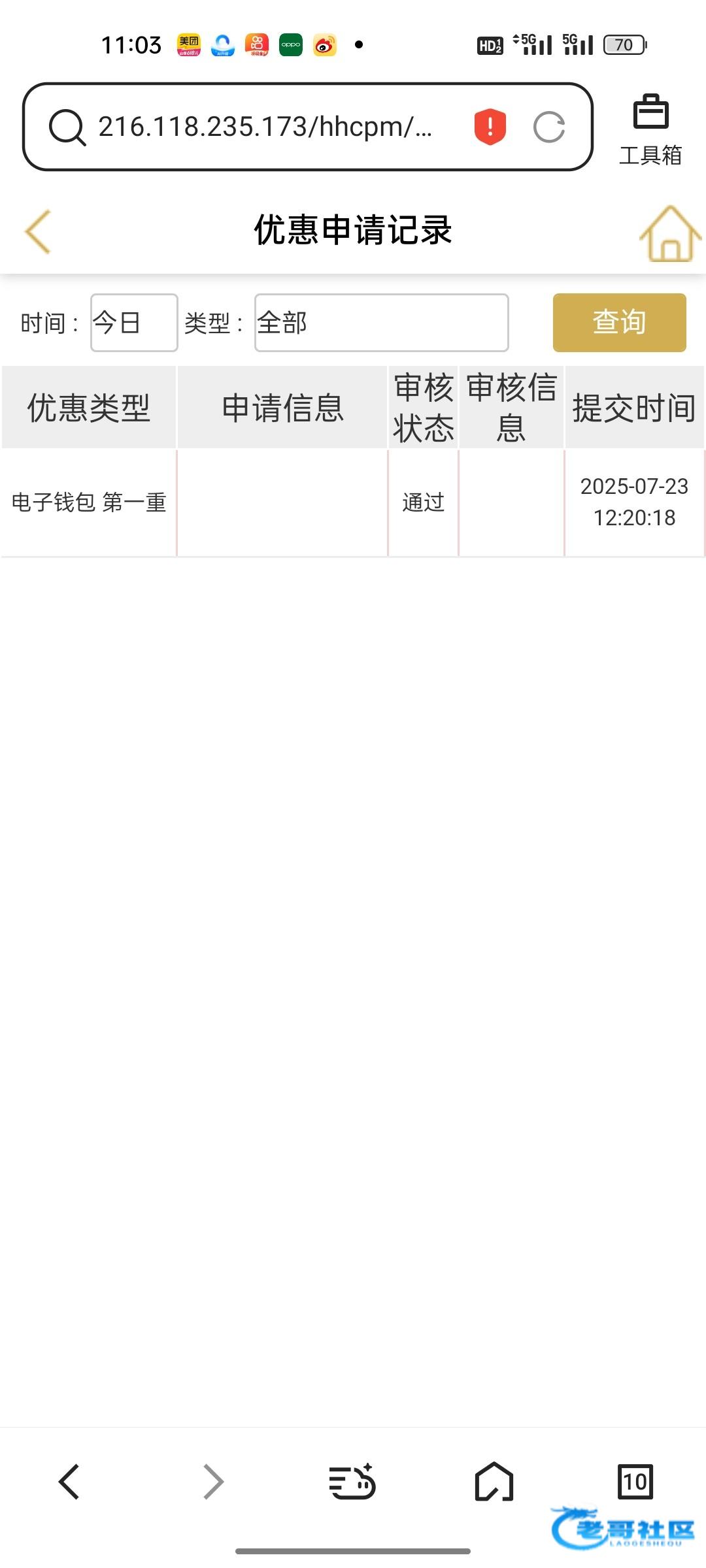 在我的,优惠申请里面手动申请
