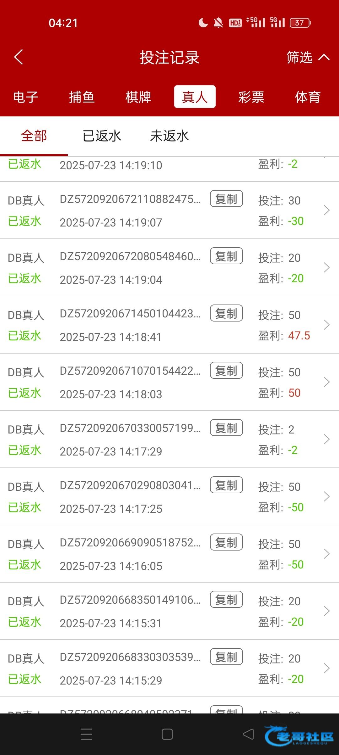 谁再发这个厂子赢钱也是出生因为玩的小从没赢过根本不敢下大注 电子天天输钱 看你们总发真人赢钱帖子心痒痒玩了好几个 几个平台全是这种情况 我也懒得截图另外几个平台的图片了 平均黑3.4能赢一把 动不动一页一页的绿 一直这样 差不多一个礼拜输了四五千打了是不到15000流水吧 半夜里我进房间一共没几个人 可我一个人杀也是经典 我不明白 我一个玩几十一百 最多二百一手的人这样盯着杀?有今日没来日?现在狗庄吃相难看闭嘴恶心人