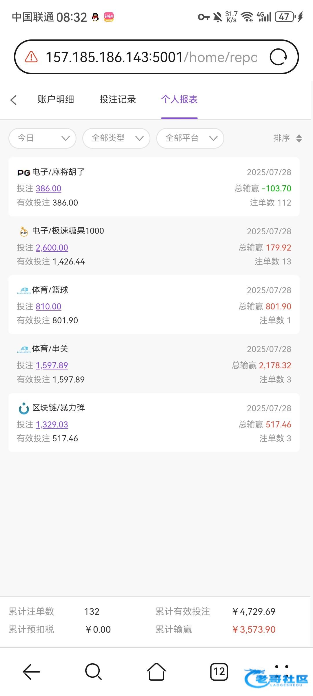 狗比太子 才赢了1万左右就开始黑了,说我投注违规,不能投熊猫体育的低级赛事,他妈的说除了五大联赛的都是低级赛事,这理由听的我想笑,都避避雷吧,太没格局了。