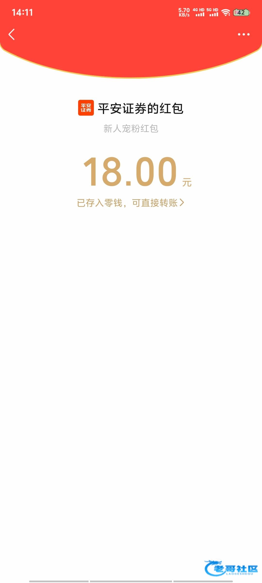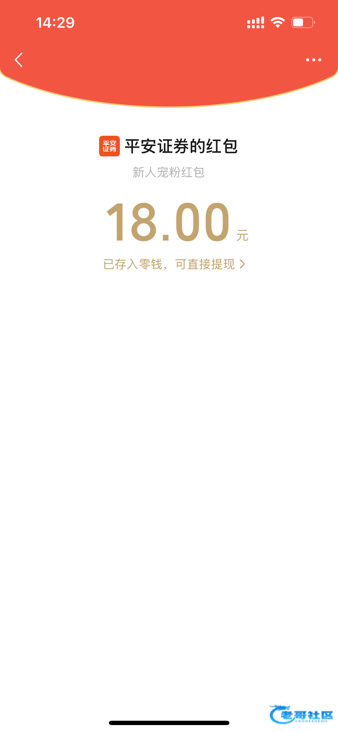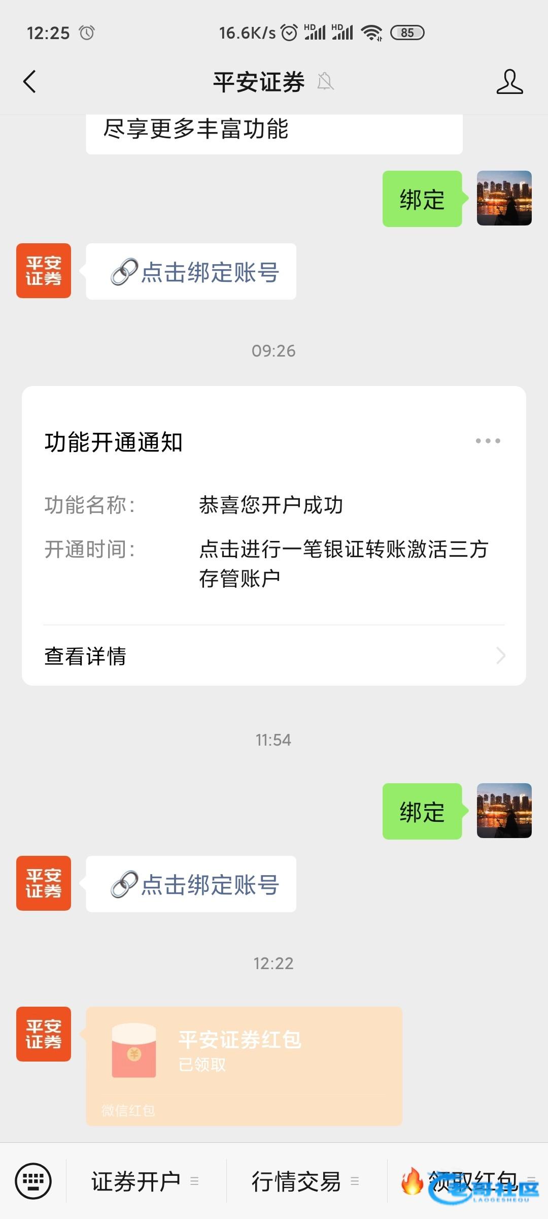 接到电话 重新扫描二维码领取 关注平安证劵公众号绑定账号 然后下载app登陆点我的 拉下去点你的新客福利已到账点进去就可以看到微信红包 点领取就到账微信了