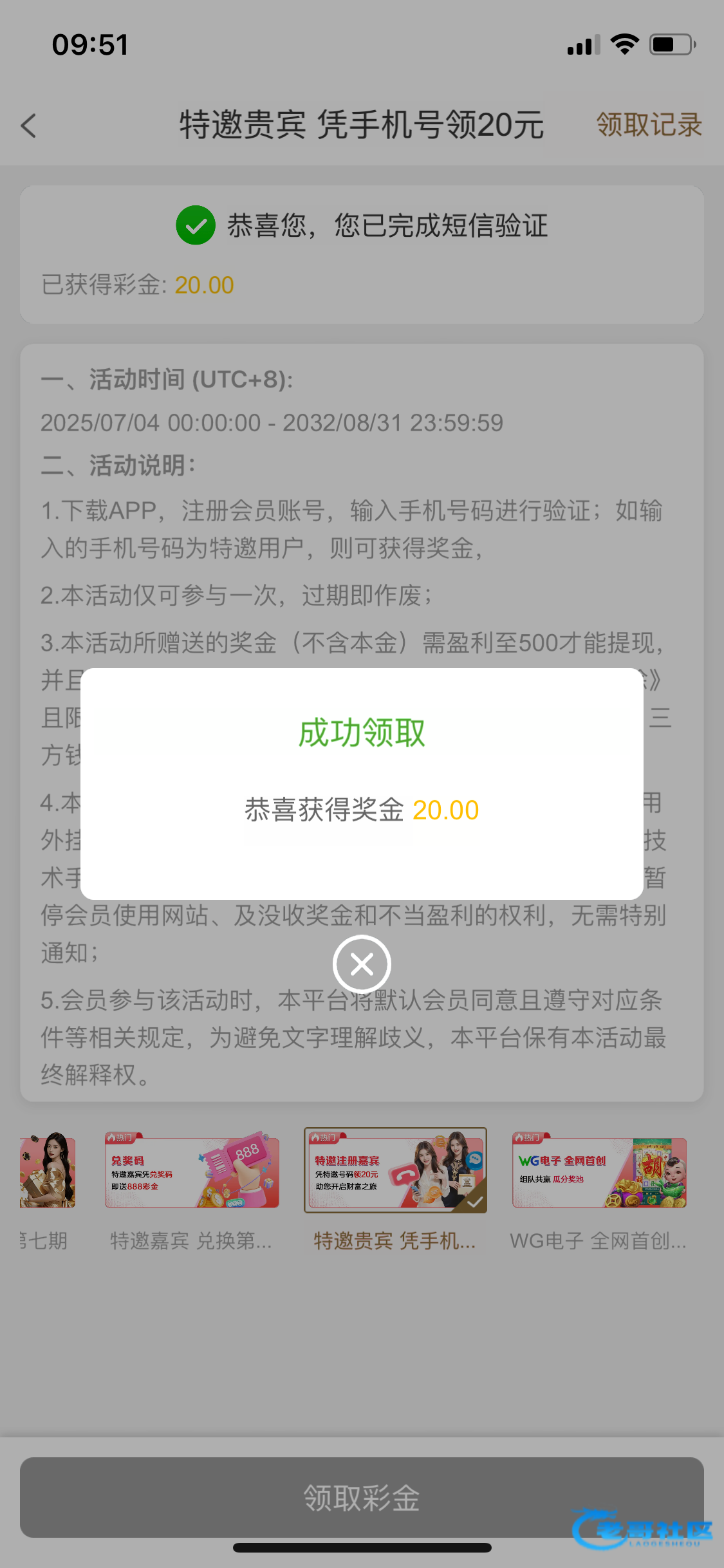 上次注册42不是特邀领不到,今天上去领了20出500助力有效贴上图
