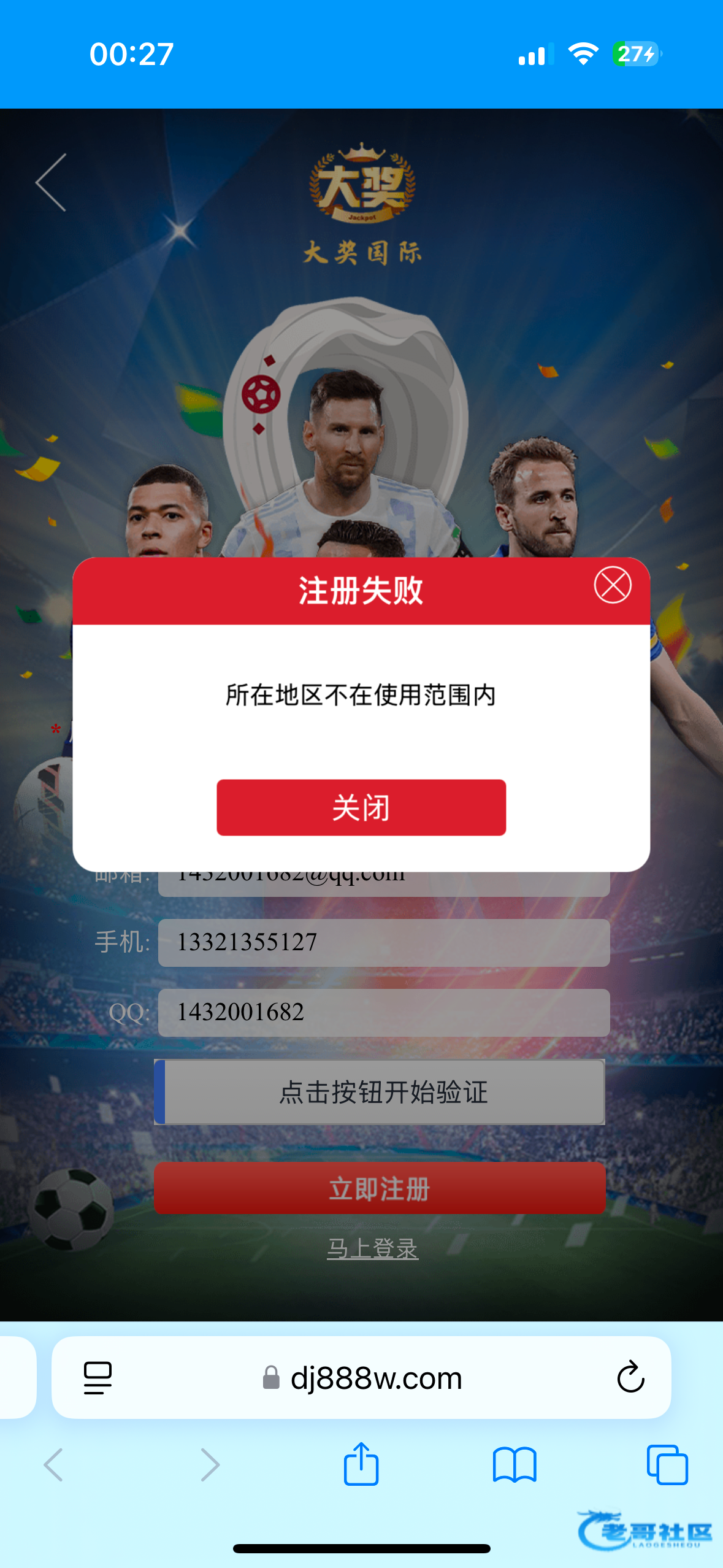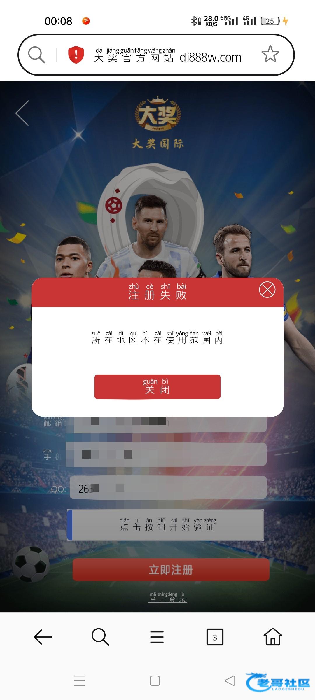 所在地区不在使用范围直接注册不了
