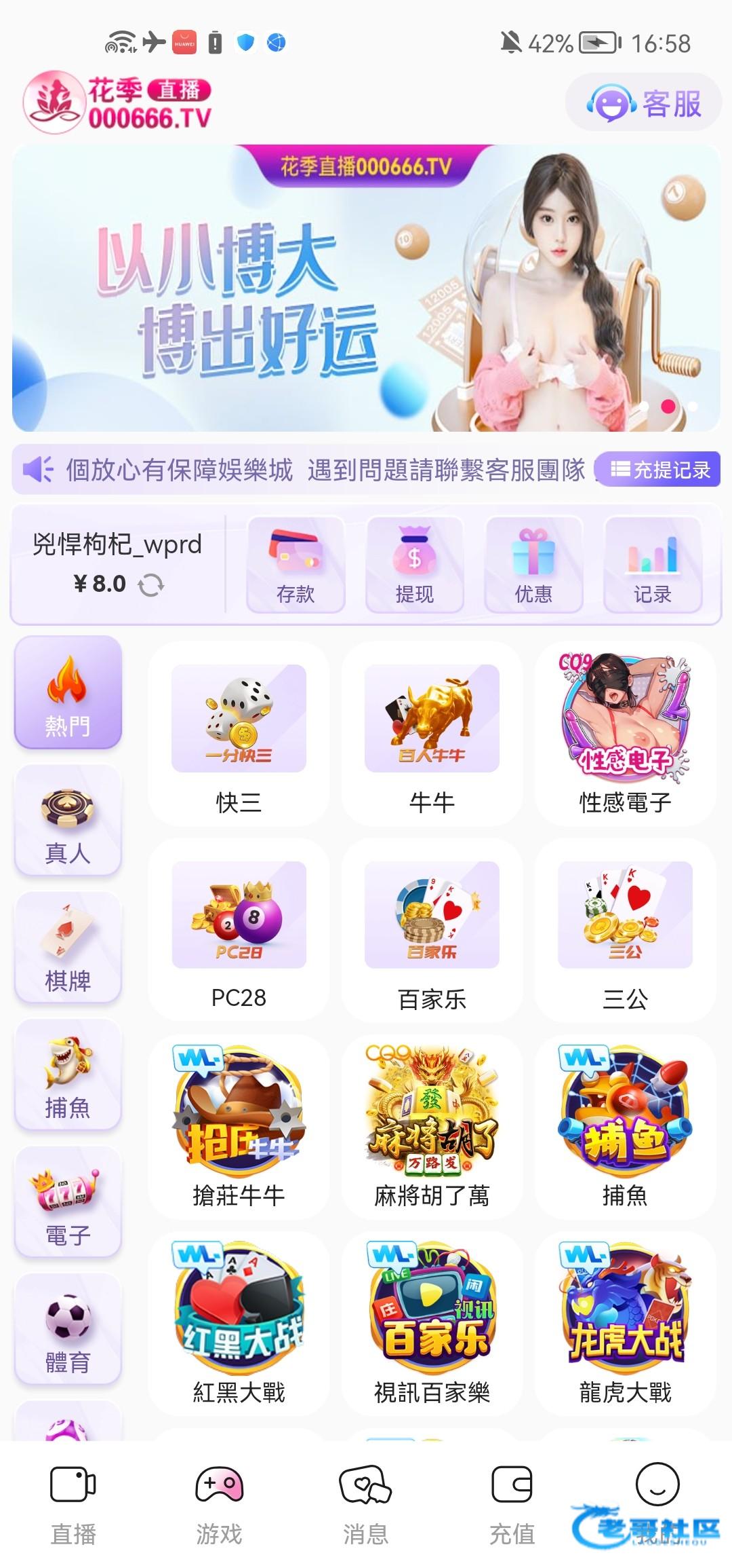 这不是花季吗?四季应该是倒闭了吧,之前特邀送了288还是388来着,一倍流水,没打出来