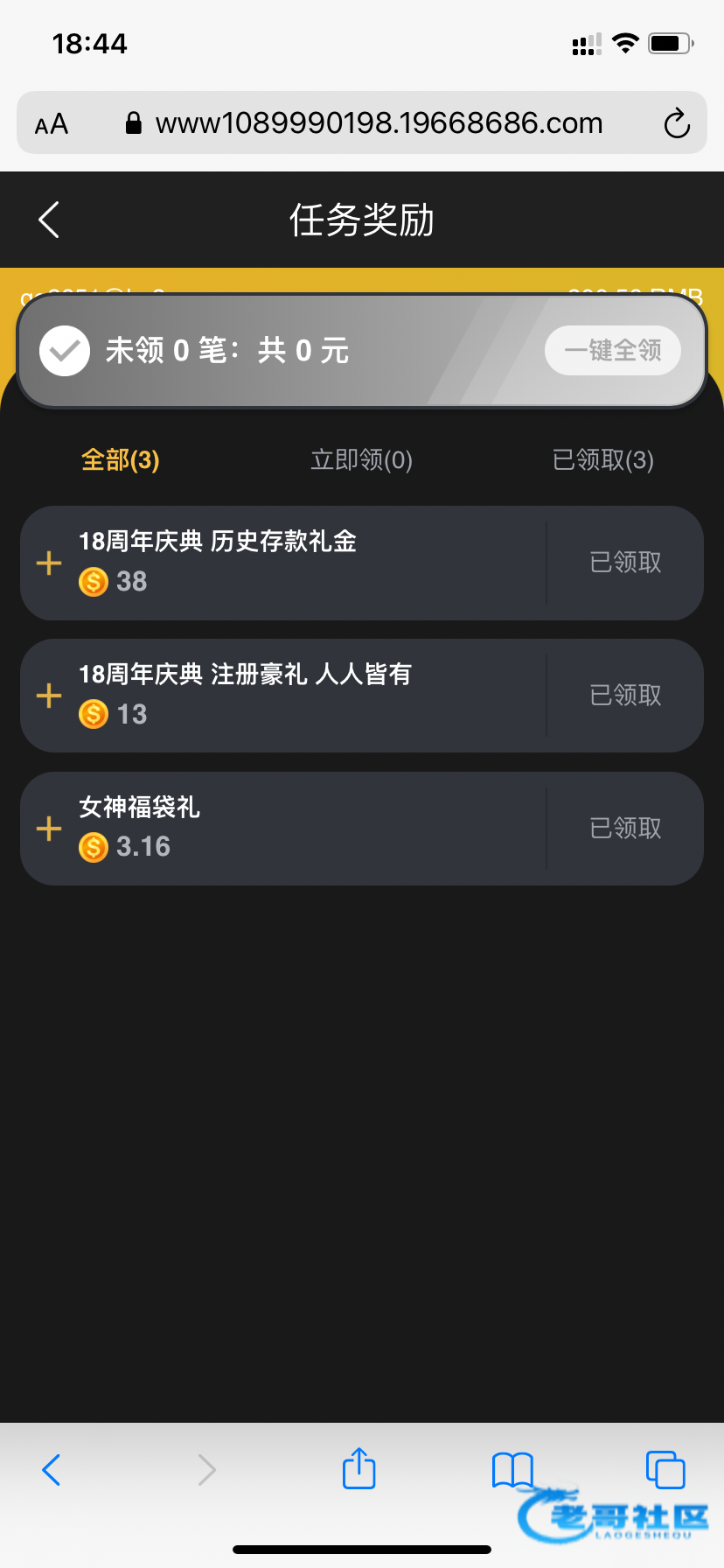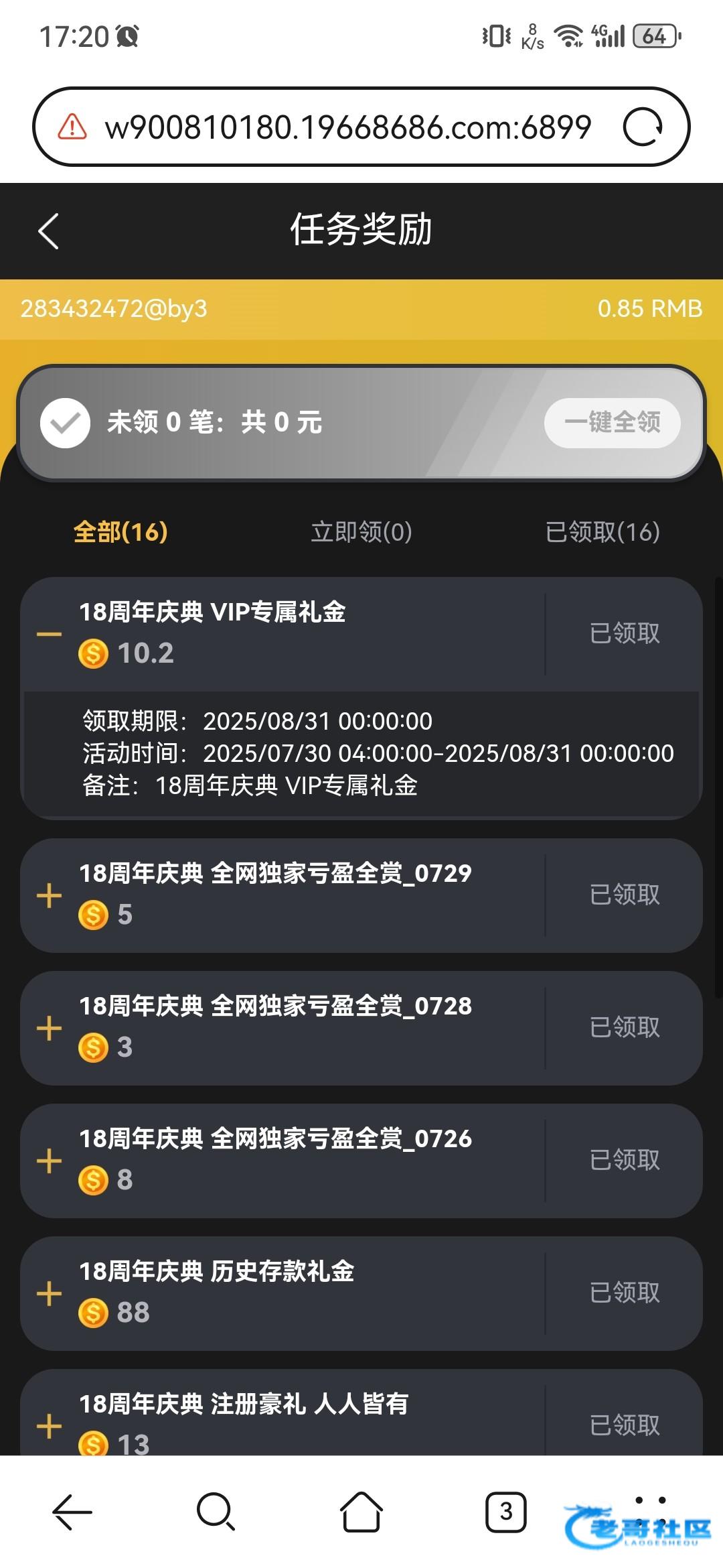 3003今天派送了VIP彩金,有等级的都有。3003.com