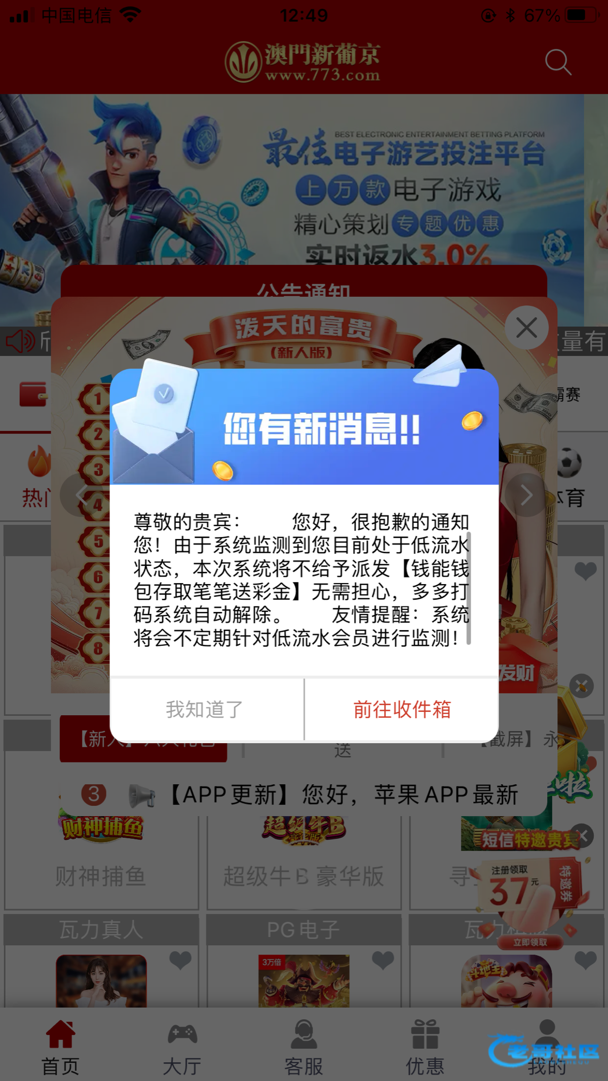 我也收到了,最近没怎么充值,偶尔充值玩一下,给我跳个这个
