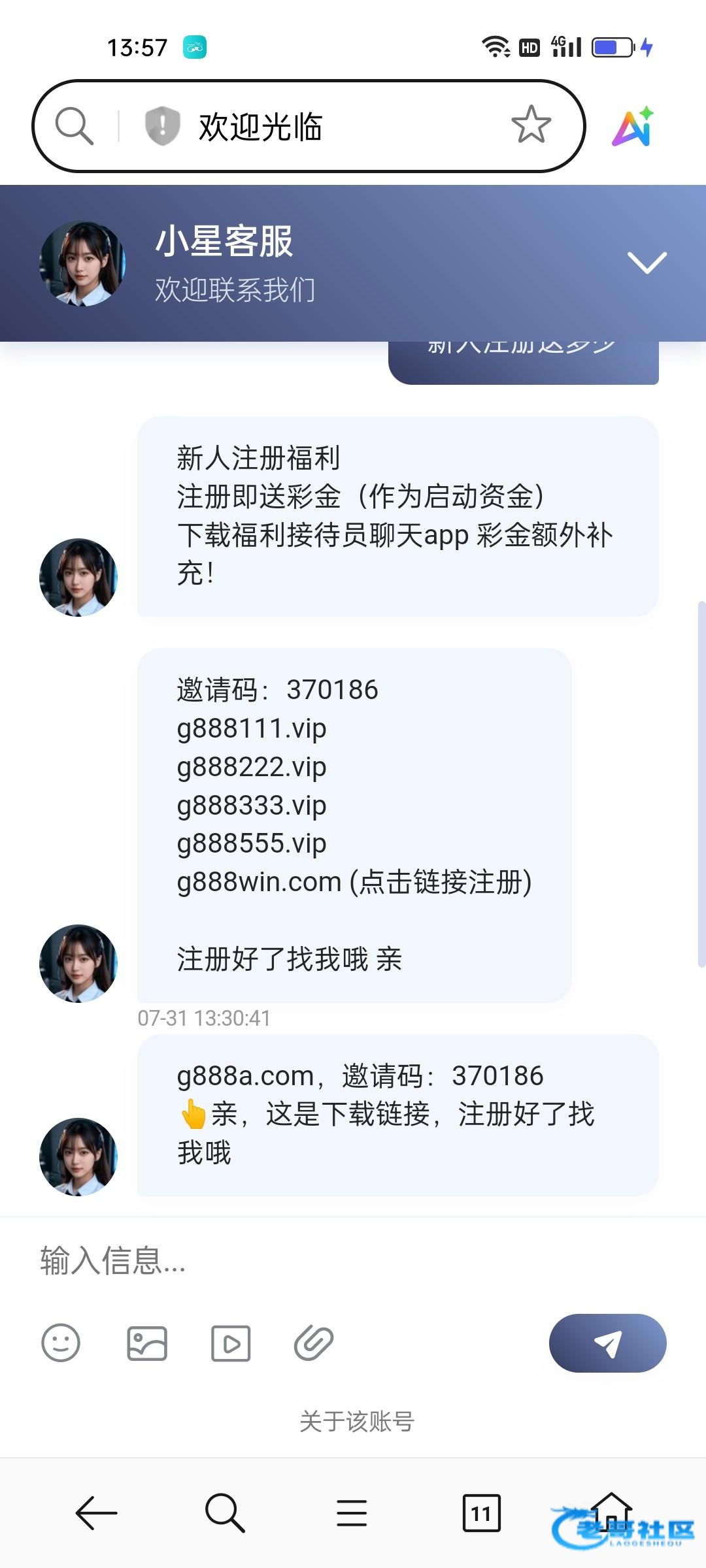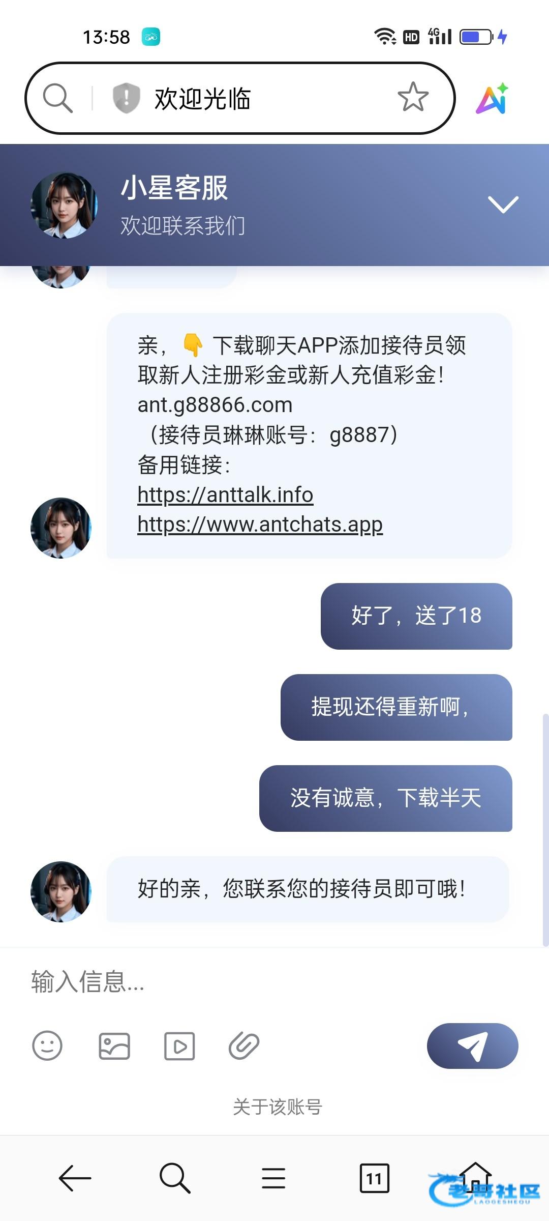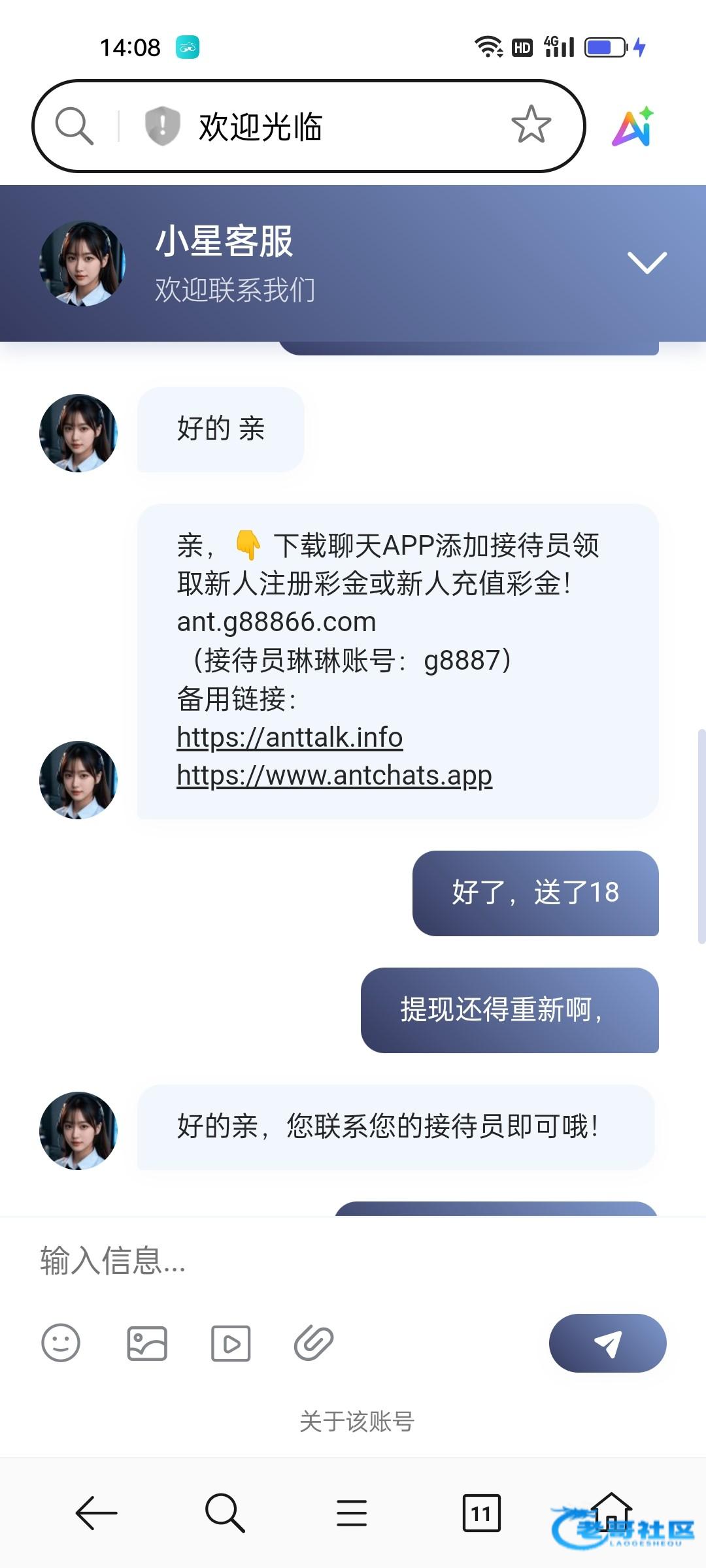 微信邀请,要手机号,送8元,评估钱包最后给了18,没打出来。链接g888a.com 邀请码370186 聊天软件ant.g88866.com 接待员琳琳 g8887