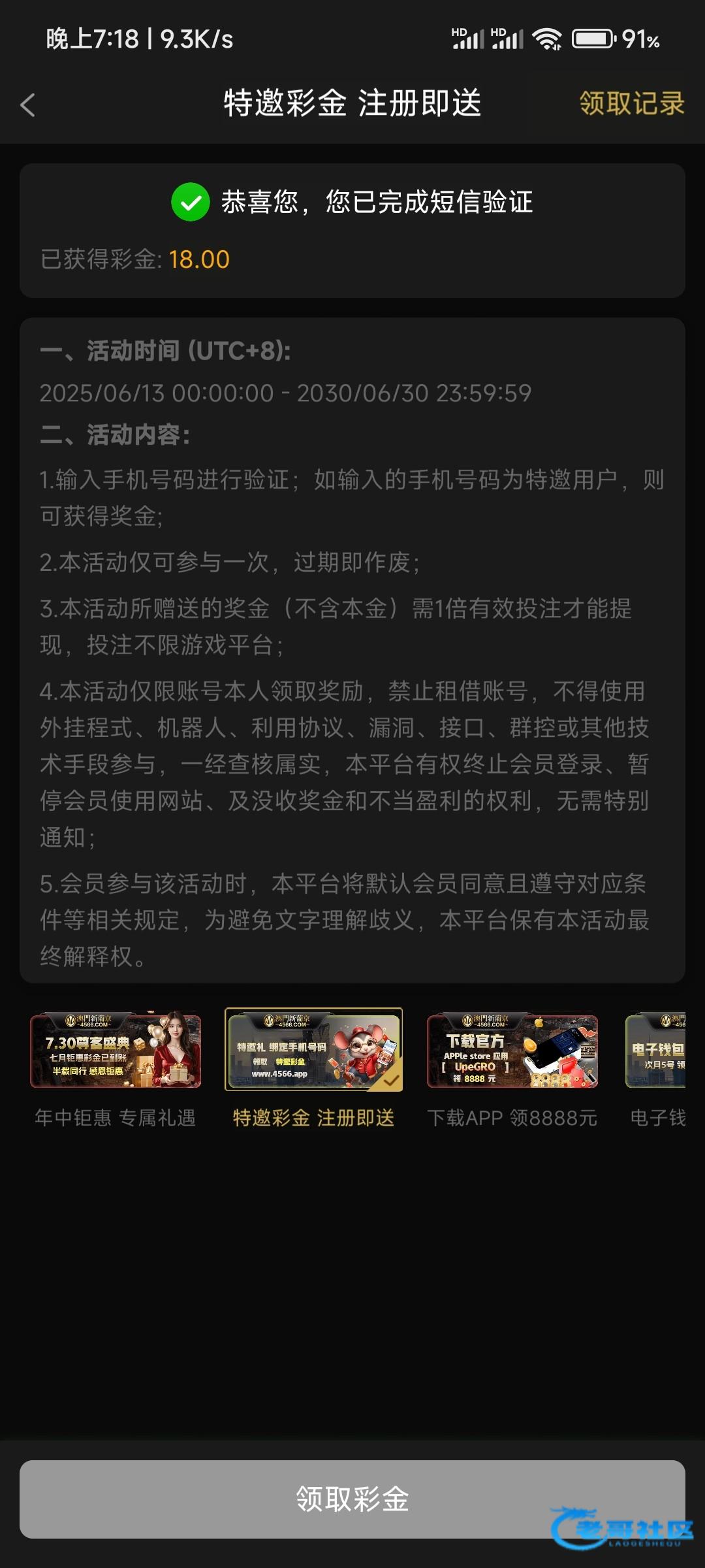 用手机号登陆领取,之前注册过的可以用手机号登录上去看看,领取彩金需要下载APP,也可以看看有没有漏接电话的,彩金无限制
