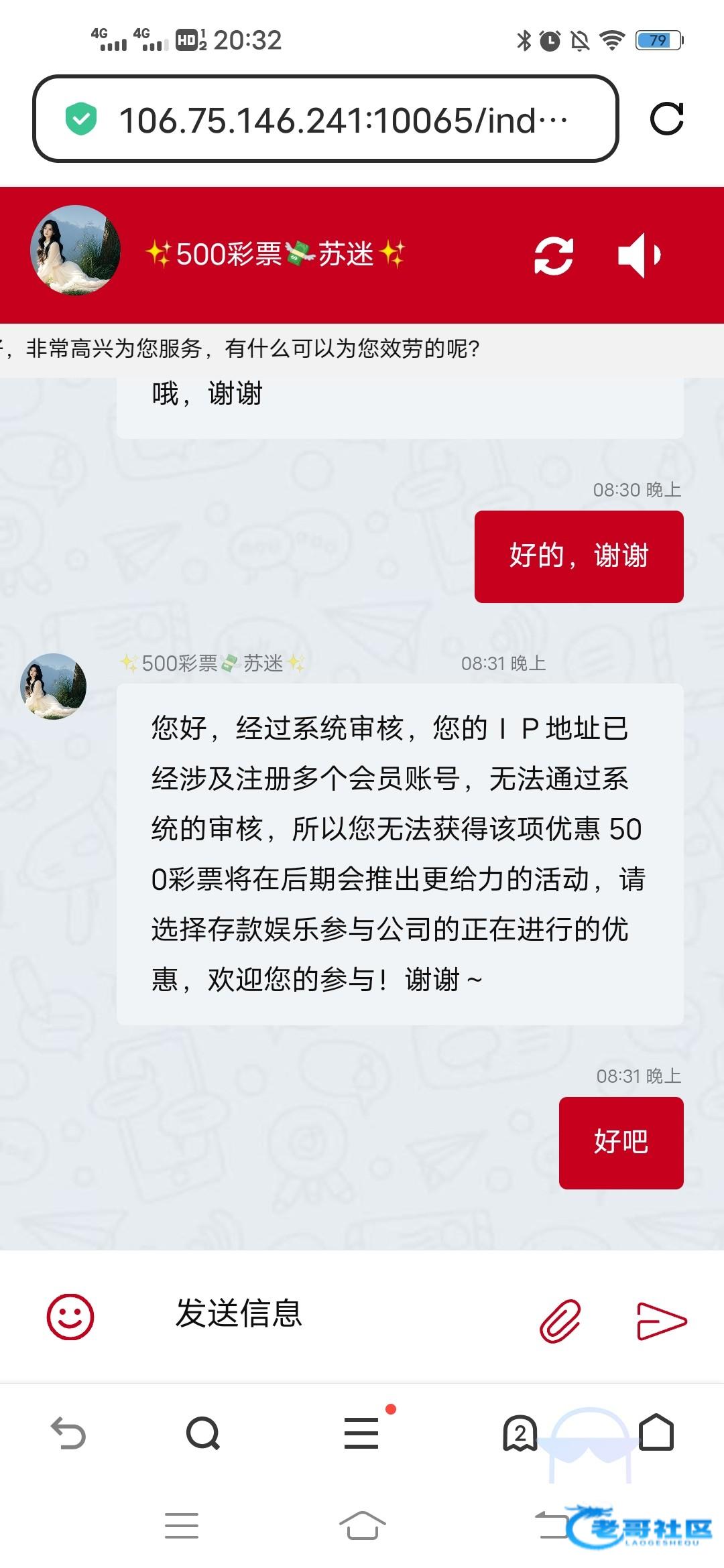 您好,经过系统审核,您的IP地址已经涉及注册多个会员账号,无法通过系统的审核,所以您无法获得该项优惠 500彩票将在后期会推出更给力的活动,请选择存款娱乐参与公司的正在进行的优惠,欢迎您的参与!谢谢~