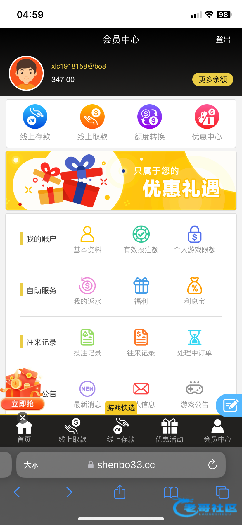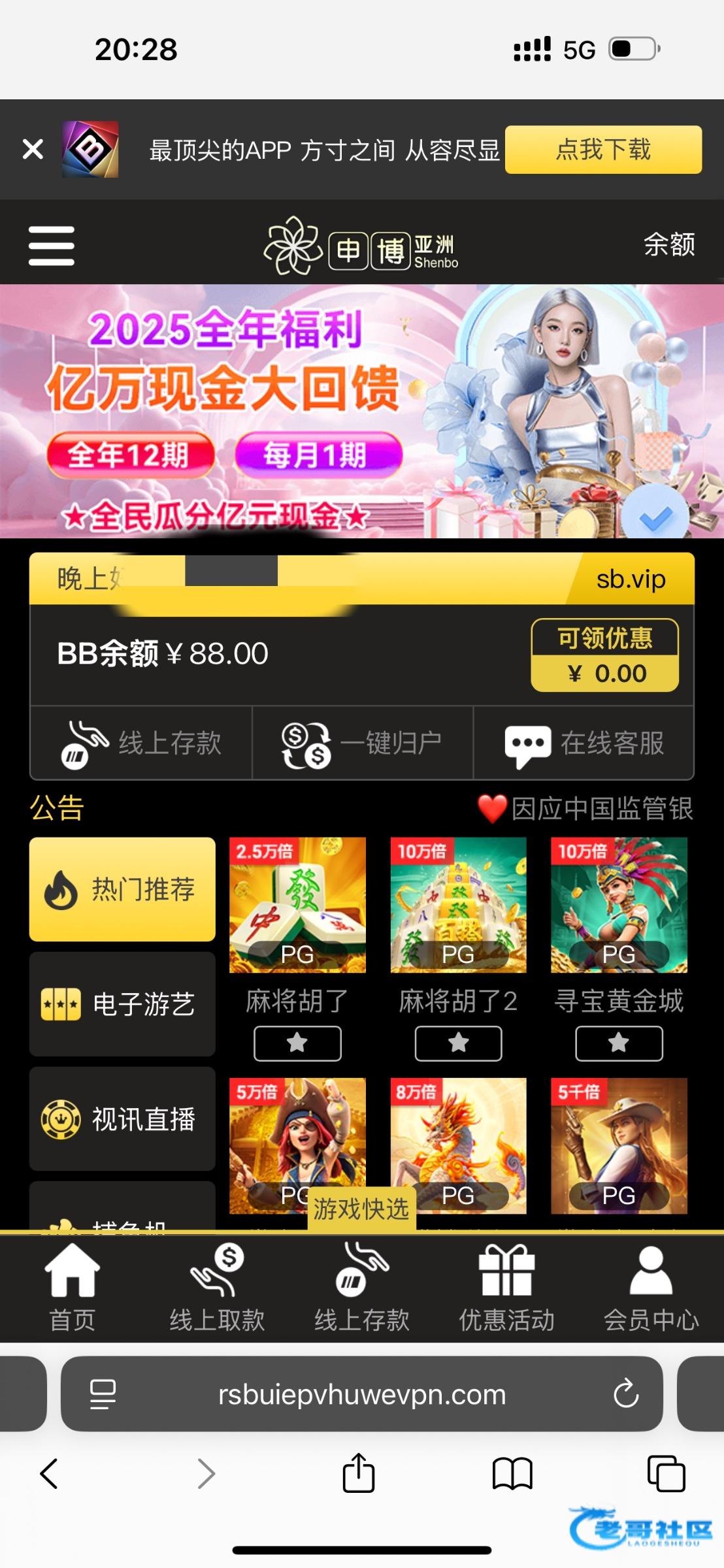 特邀vx来的,注册后去优惠里自助申请,最少88我没打出来。网址:sb.vip
