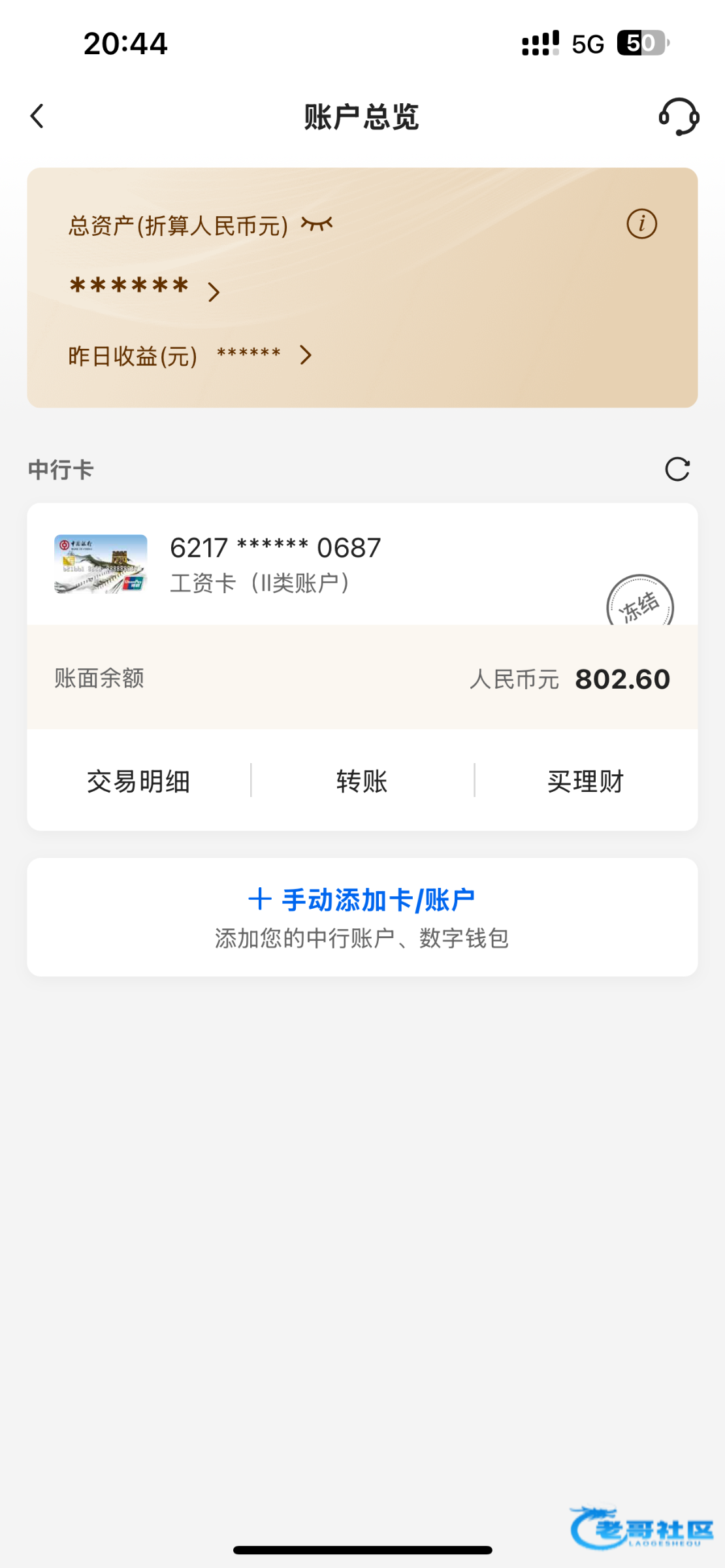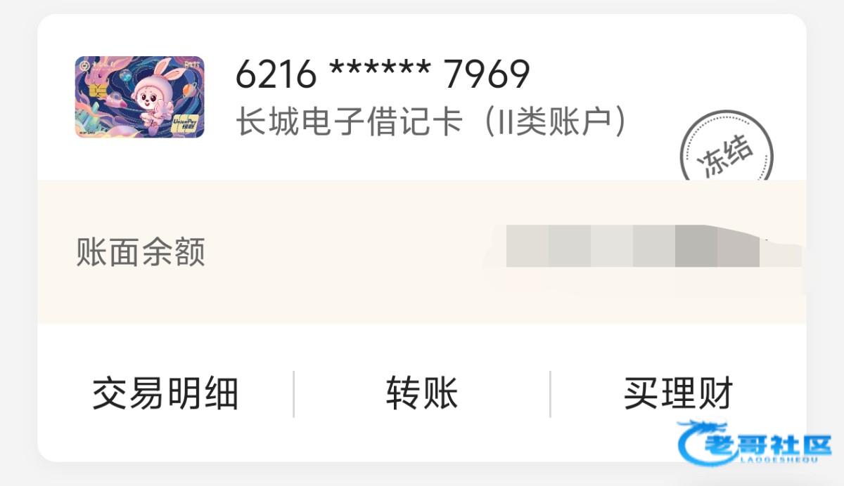 说一下哈啊,这个卡就是平台用的,提现支付宝微信的,没有走平台提过,也没有给狗庄银行卡转账过,就是刚刚发现的不能用了,下午的时候还正常使用,刚才打电话问过了,让我联系开户行咨询,这个卡现在处于只能进不能付的状态,这个页面只有冻结,没有其他的显示了,有没有老哥知道的解答一下