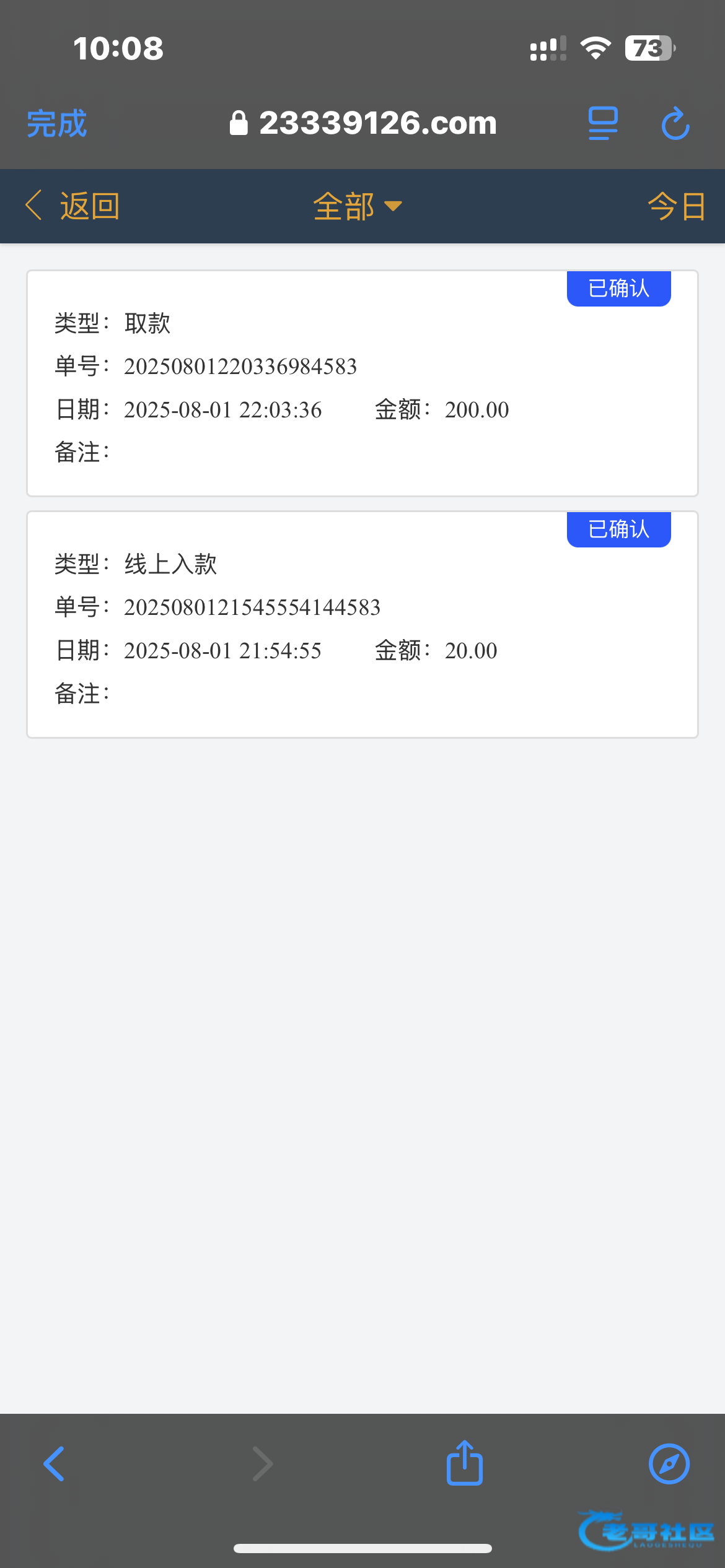 20到账 历史有充值记录 充值100挂壁在充值150提款190