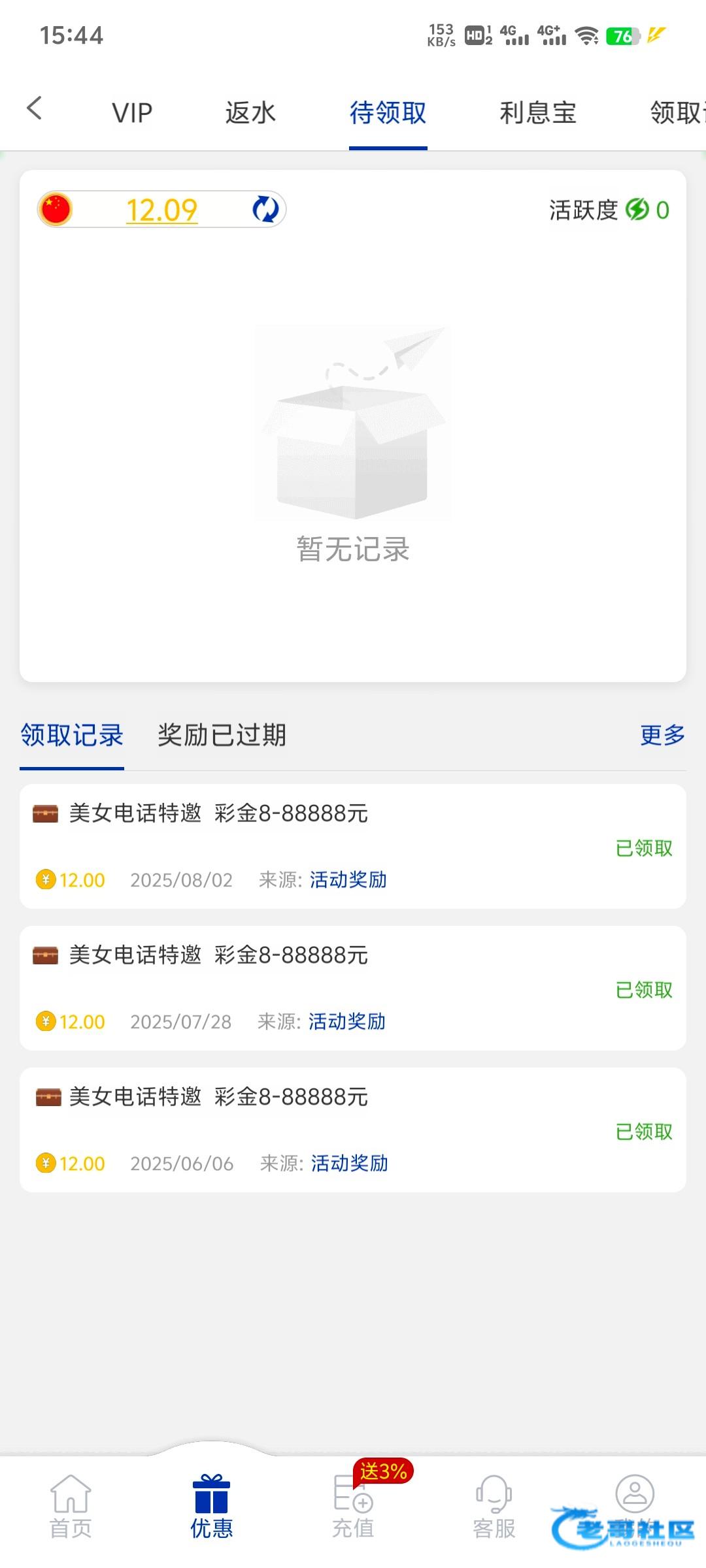 接到电话说登录上线在优惠里面领取,漏接的老哥都去看看,没有无视即可,请勿充值!