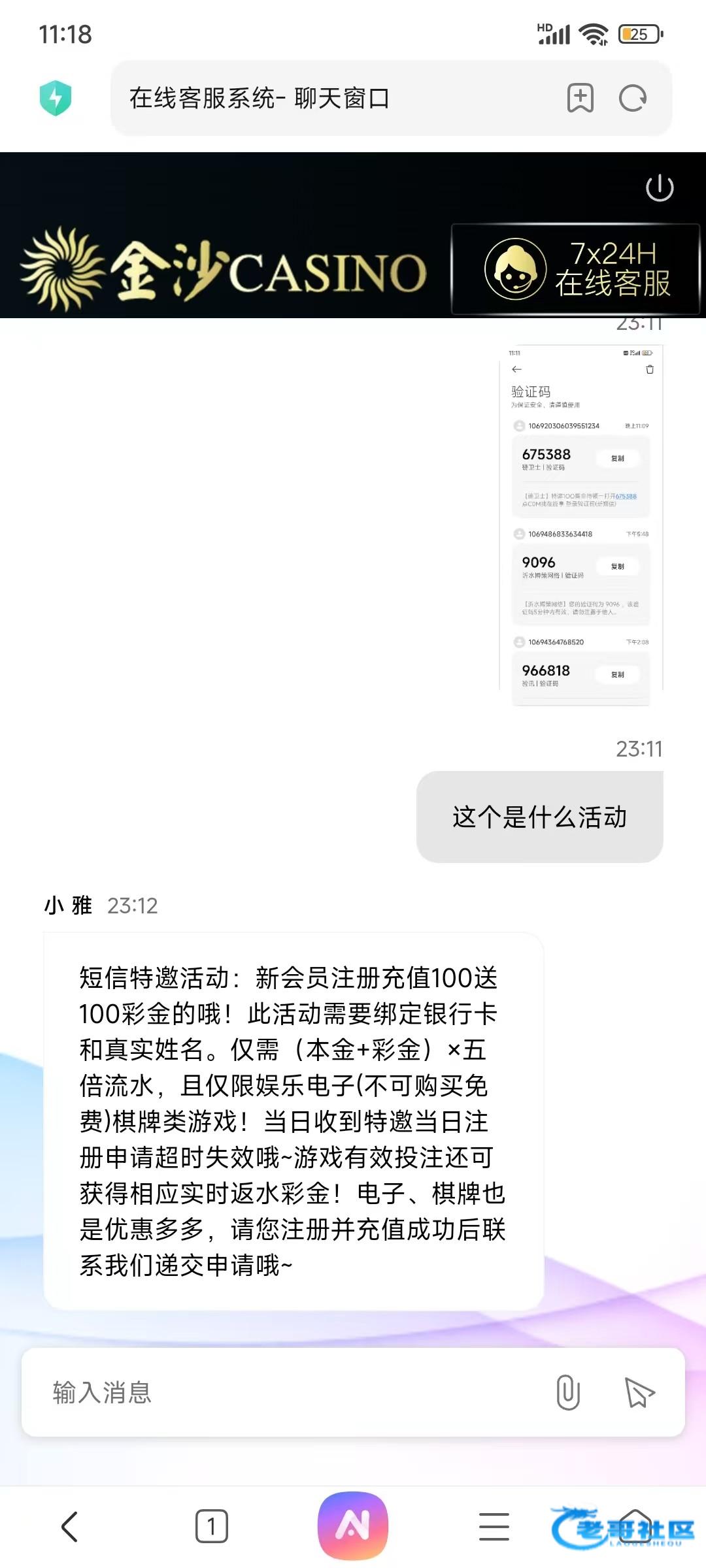 金沙jjss789.com收到个短信 进去客服说100+100 但是只能当天申请