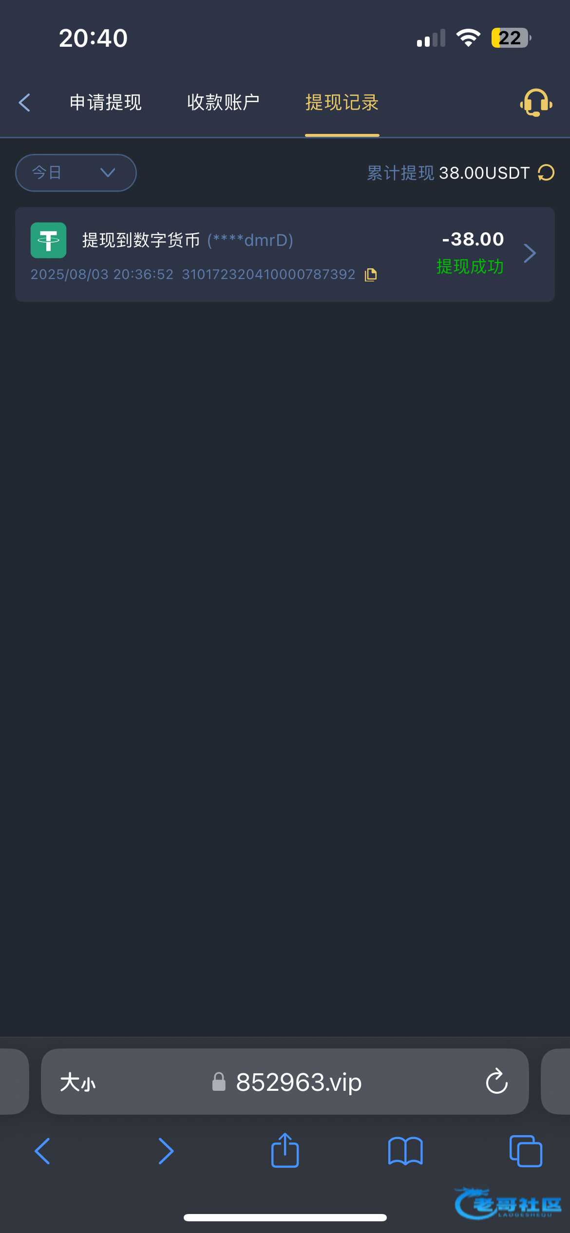 提现到账38u