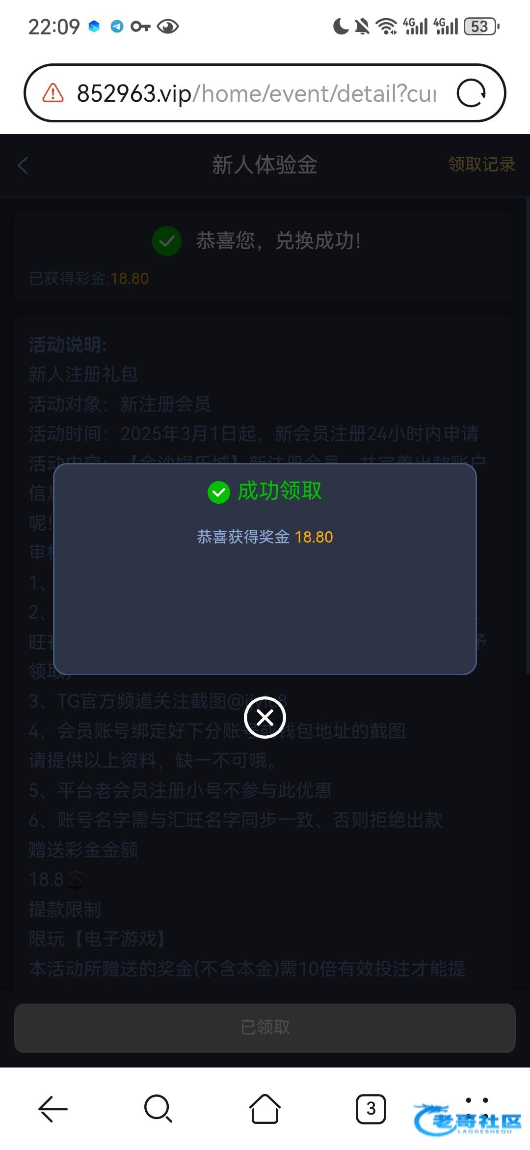 我不是特邀去找飞机客服领的新人体验金兑换码,很麻烦会问你哪里看到的平台,我说朋友推荐,还要让我发朋友推荐聊天记录截图,我自己做了个vx聊天记录截图,然后汇旺提供了欧易流水和钱能流水,领了18.8没水打死了,然后返水活动一块钱打上去了,真的是柳暗花明又一村,不嫌麻烦可以去找飞机客服