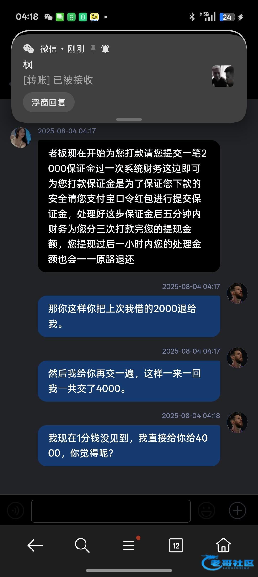 老哥,别再交钱了,他不会给你出的,这是诈骗