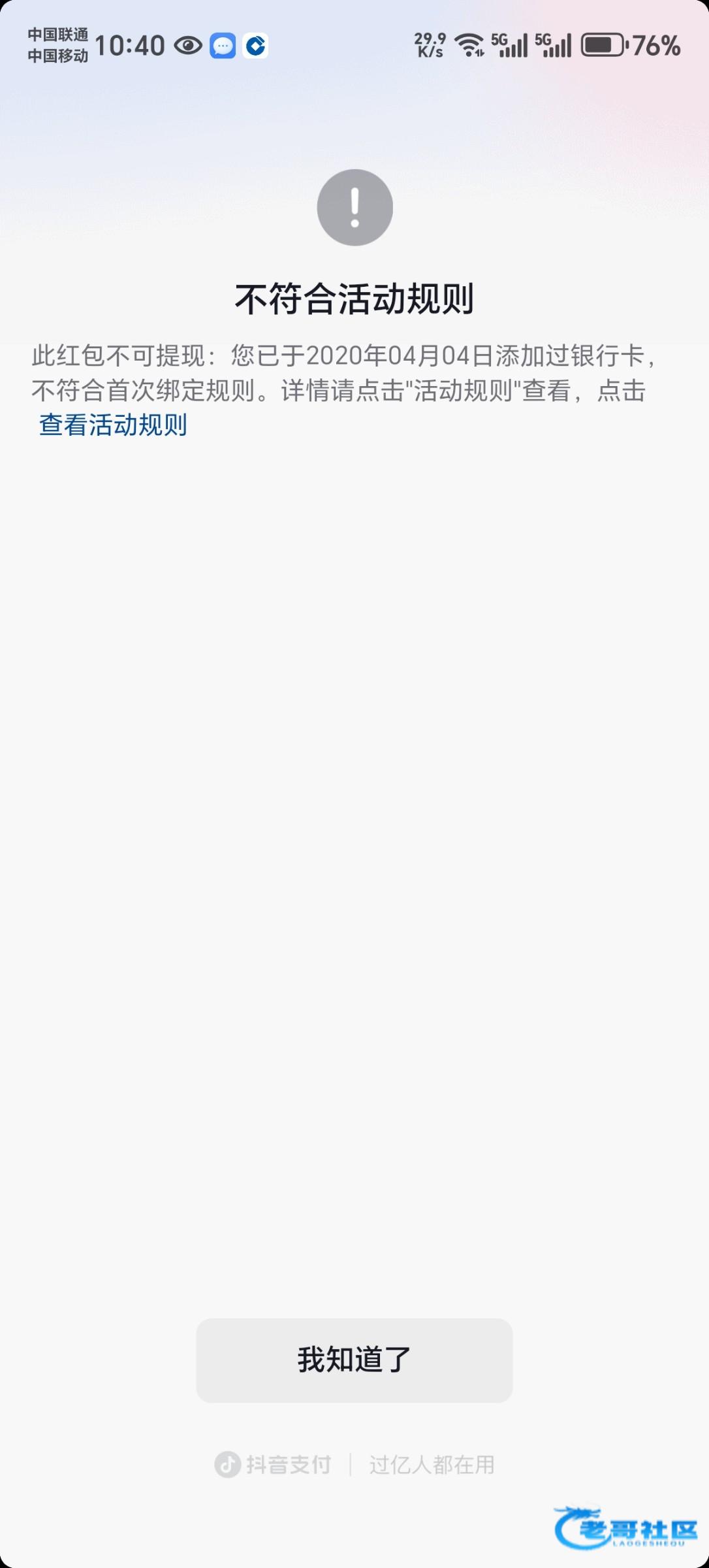 只要抖音账号正常的老哥,注册天数在30天以上的,就可以辅助注册一个账号,不用新的手机号码就可以注册,注册成功之后抖音秒送一张5.01的红包绑定银行卡就能提现,抖音商城还送一张10元无门槛抵扣劵
