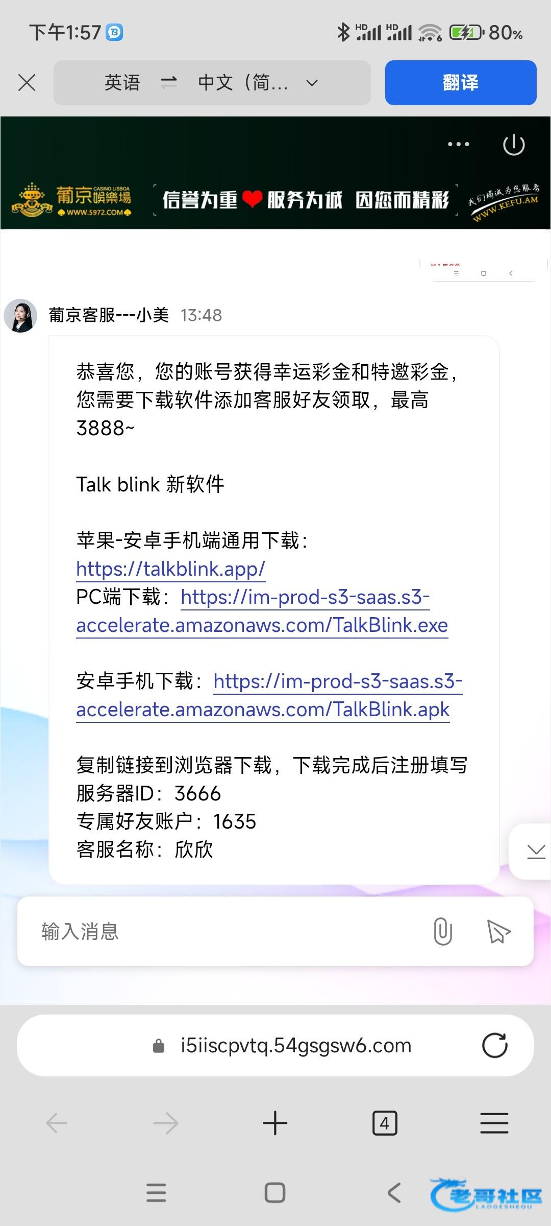 PC端下载:https://im-prod-s3-saas.s3-accelerate.amazonaws.com/TalkBlink.exe安卓手机下载:https://im-prod-s3-saas.s3-accelerate.amazonaws.com/TalkBlink.apk复制链接到浏览器下载,下载完成后注册填写服务器ID:3666