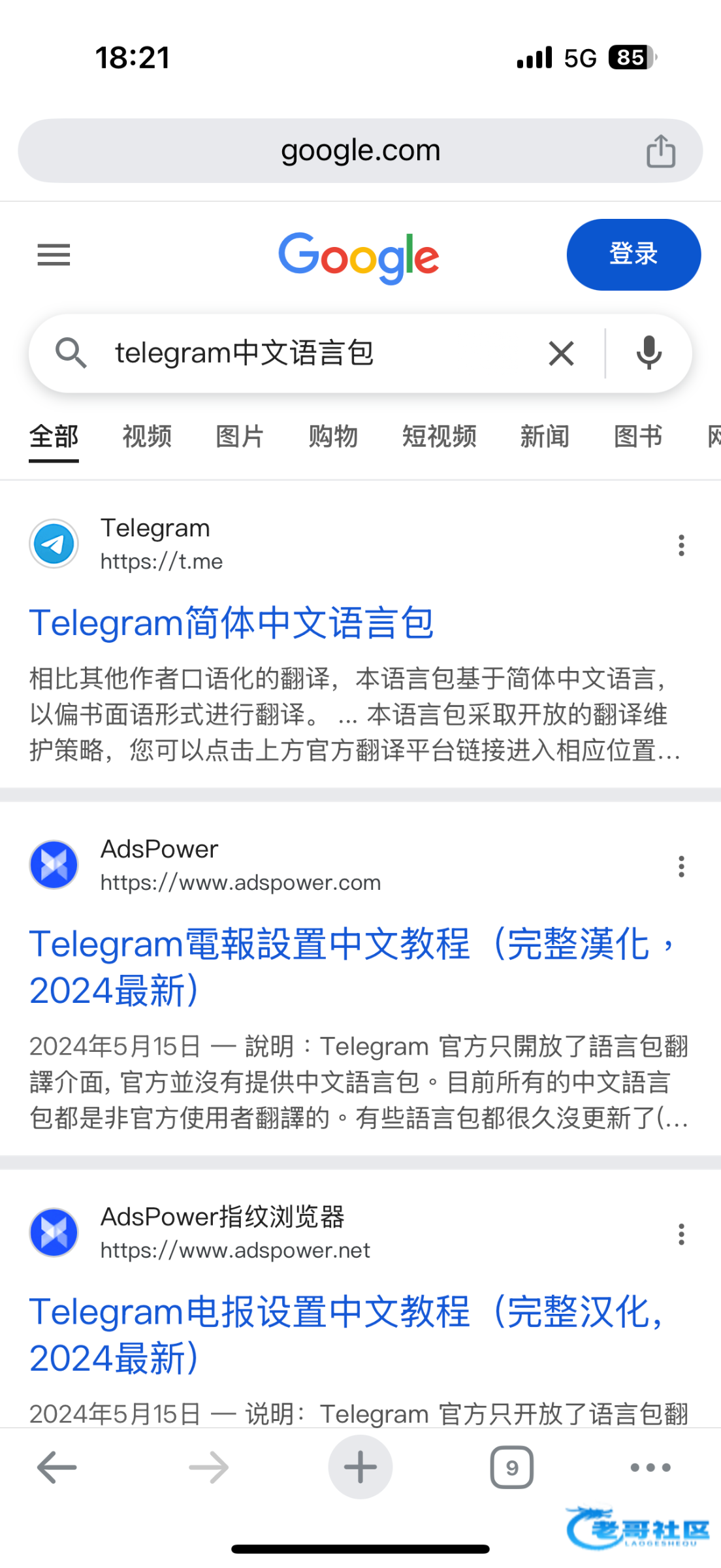 谷歌搜索tg中文包