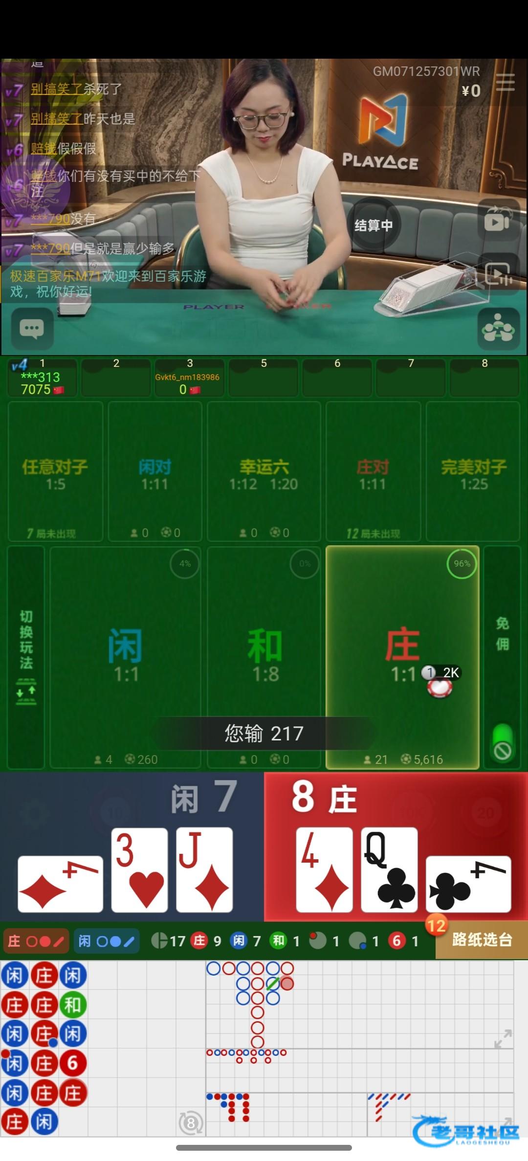 看了一下下了42把中了12把全部跟龙,然后想起之前梭哈幸运七,闲翻开七点,装搓半天就是九,兄弟们真的比pg都夸张现在这个真人