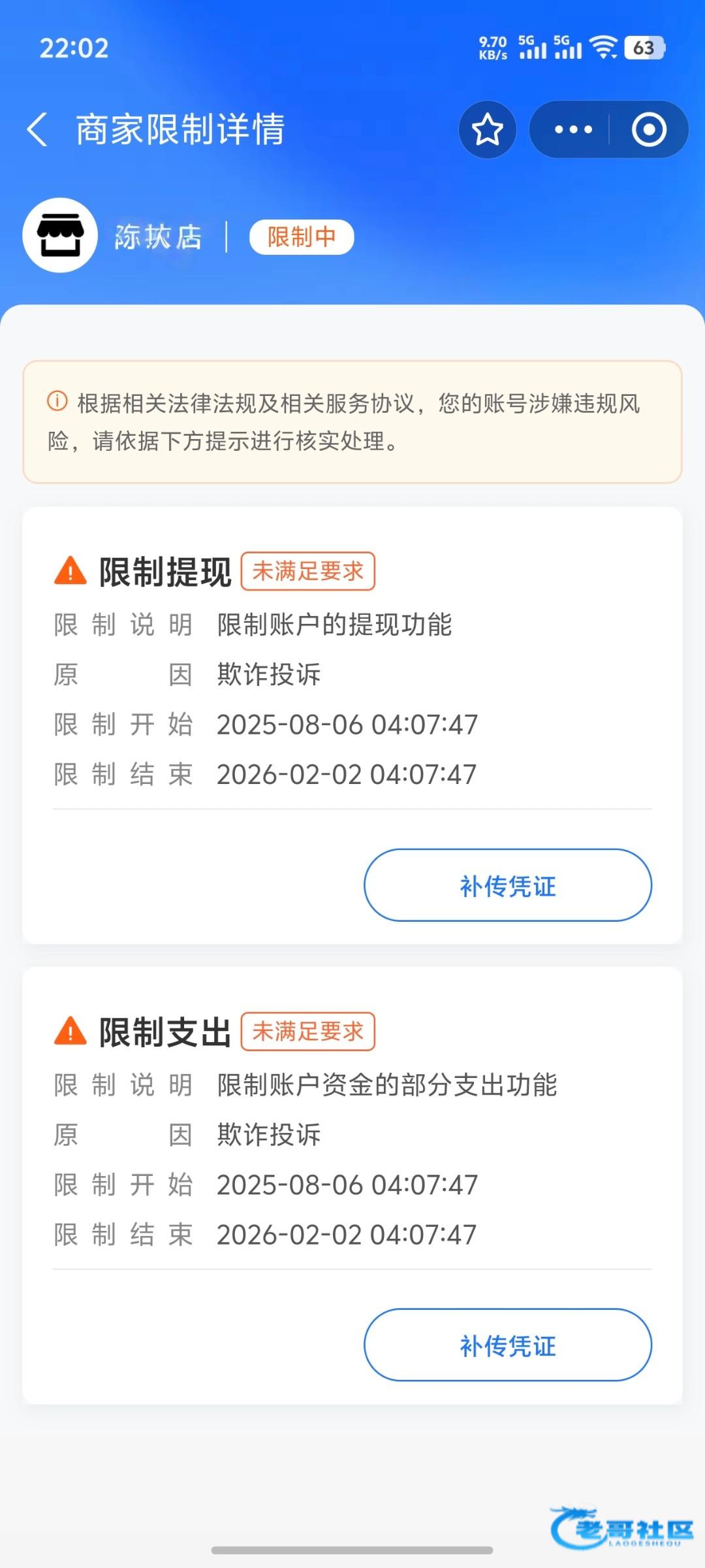 我限制收款一个月