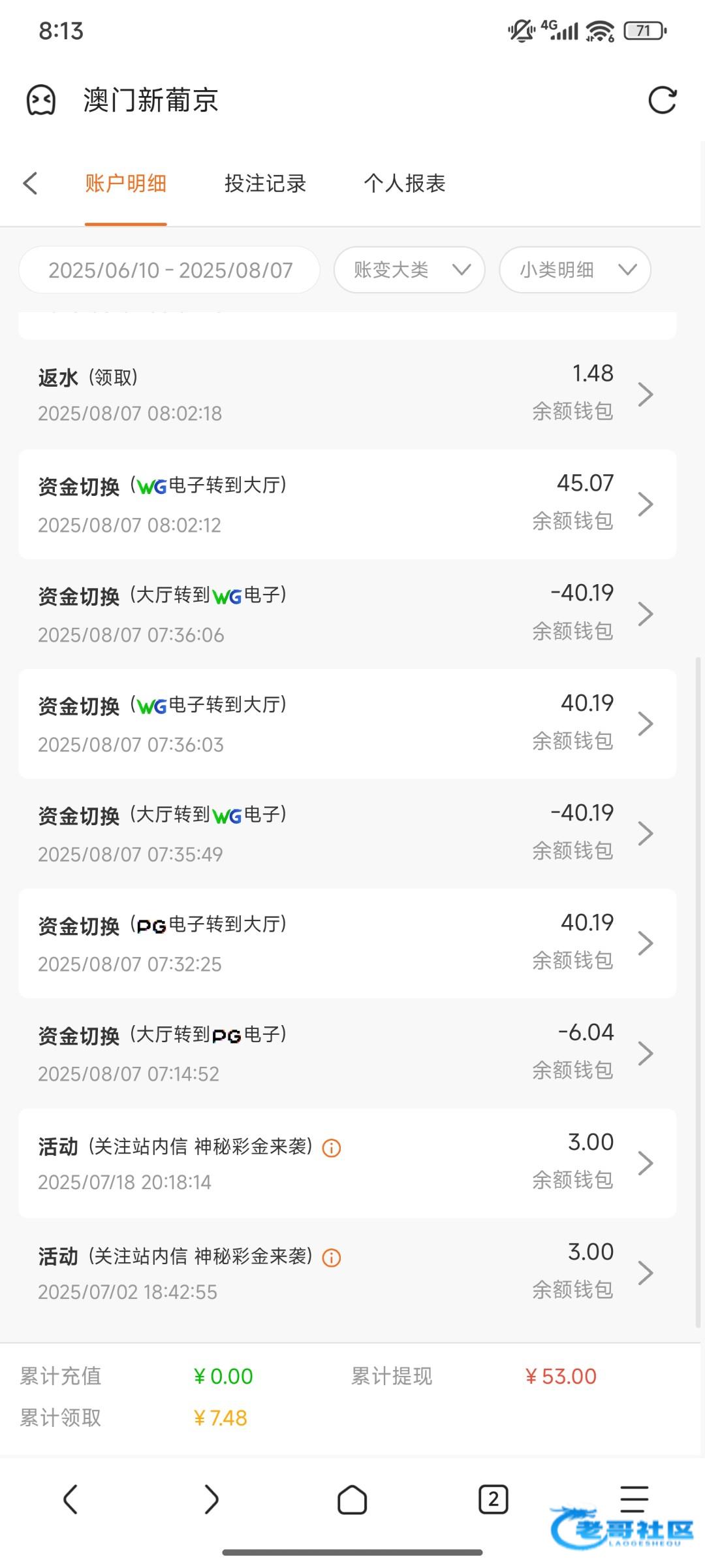 赌神上站内信上月➕这个月,一共6快,50起提。总共充20,这一次提53出了。455.com