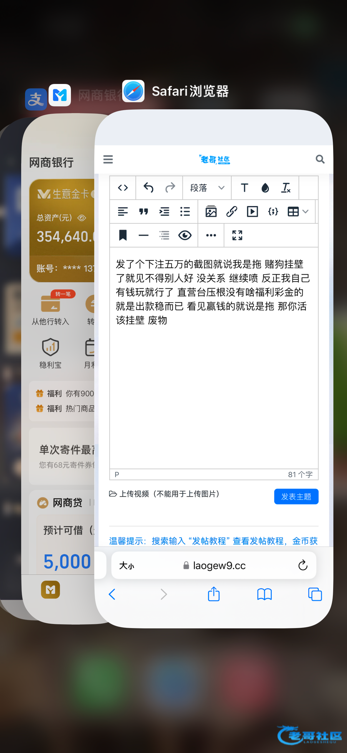 发了个下注五万的截图就说我是拖 赌狗挂壁了就见不得别人好 没关系 继续喷 反正我自己有钱玩就行了 直营台压根没有啥福利彩金的 就是出款稳而已 看见赢钱的就说是拖 那你活该挂壁 废物