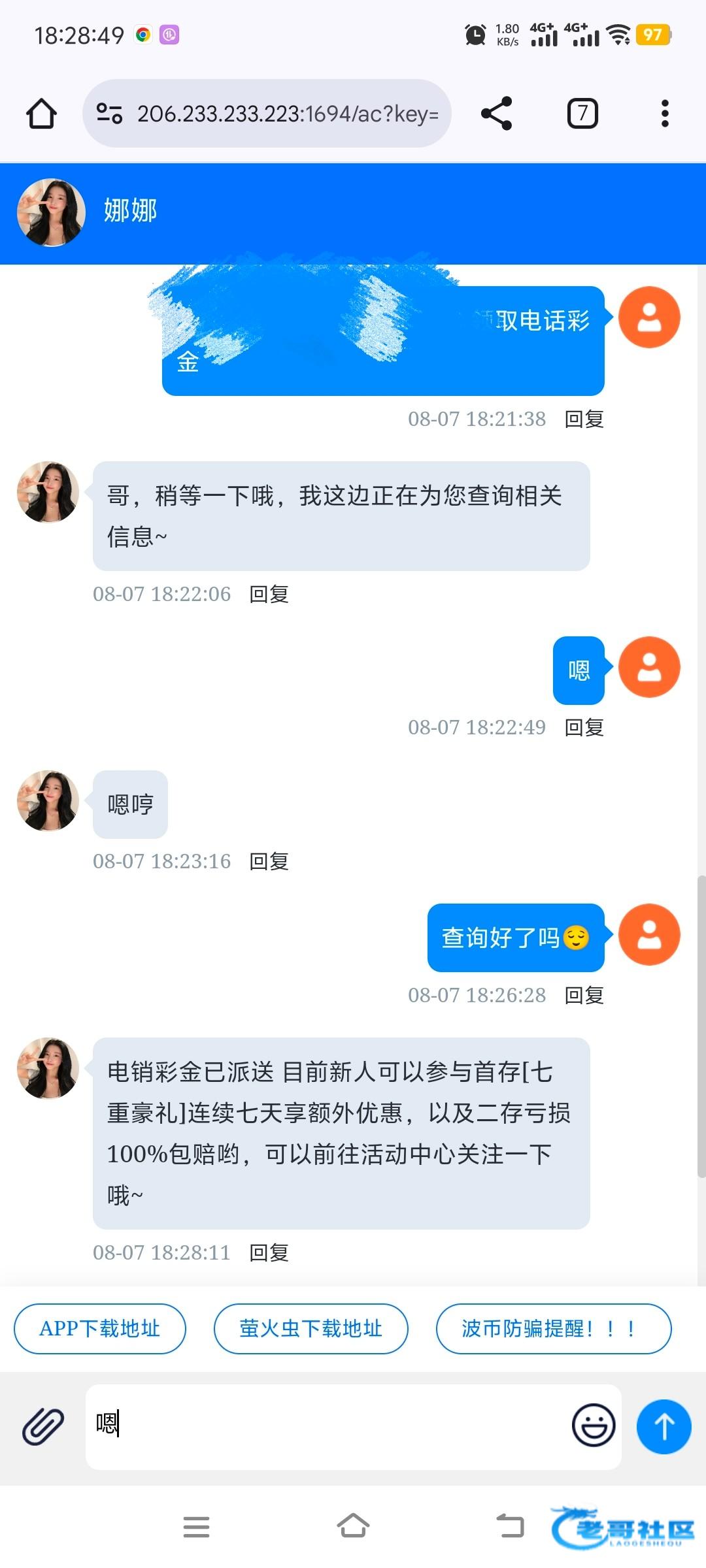 您好哥哥经查询目前不在特邀名单内,保持账户活跃存款投注,有更大的几率获得下一次幸运彩金电话
