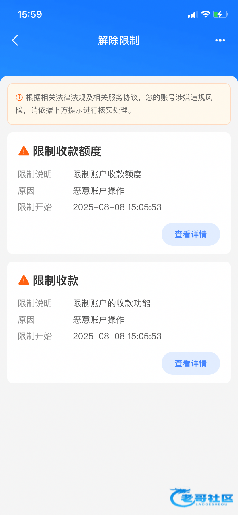 举报是限制收款或提现了