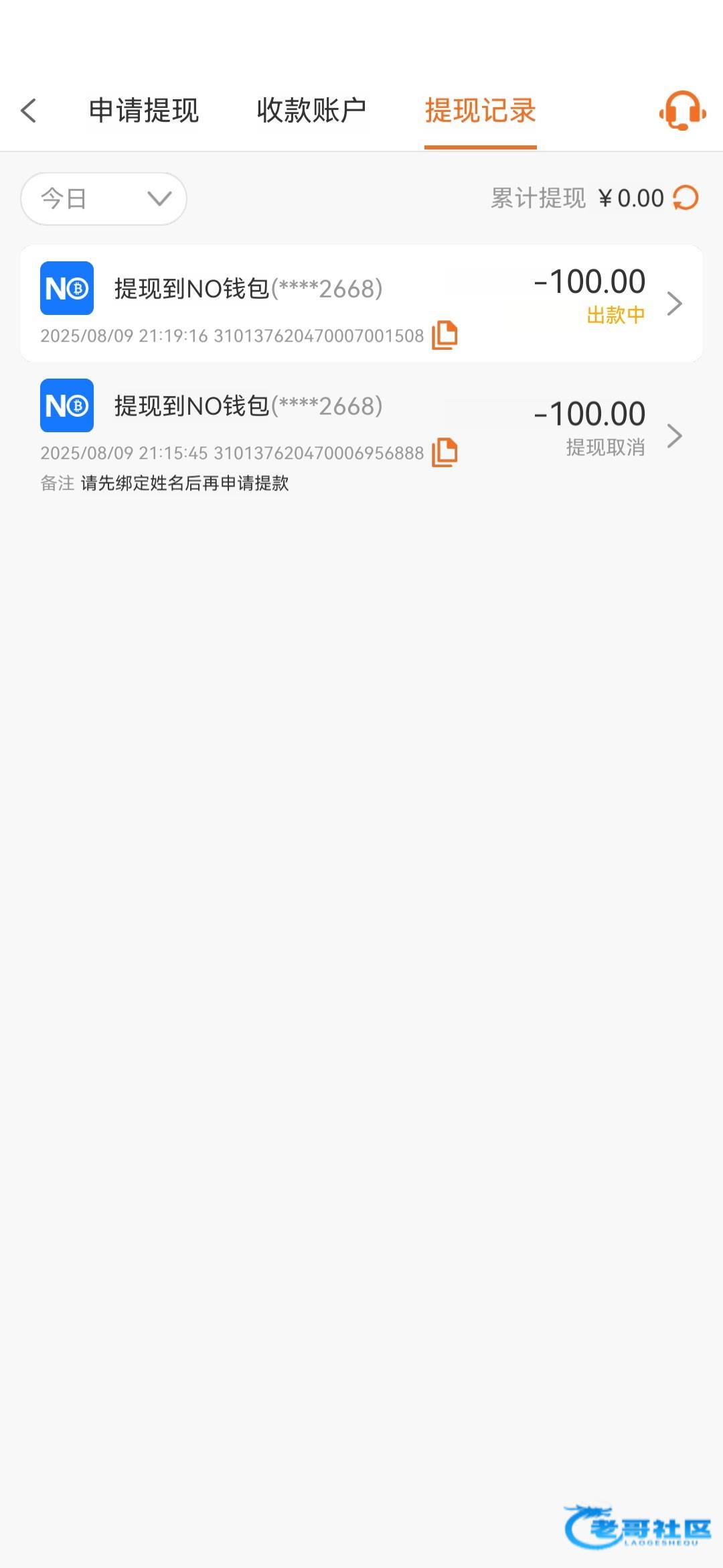 提现100元,2个小时一直没有到账