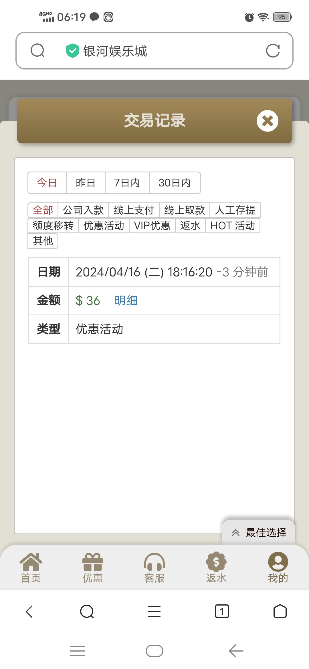 @cyx8848 ,大概一个月左右就可以去碰那个电话回访彩金了,一个月不送两个月基本都会送。今年已经领了三四次58了,几乎每个月都有,不要隔一两个星期就去碰,很容易被查出来,到时候不给回馈了