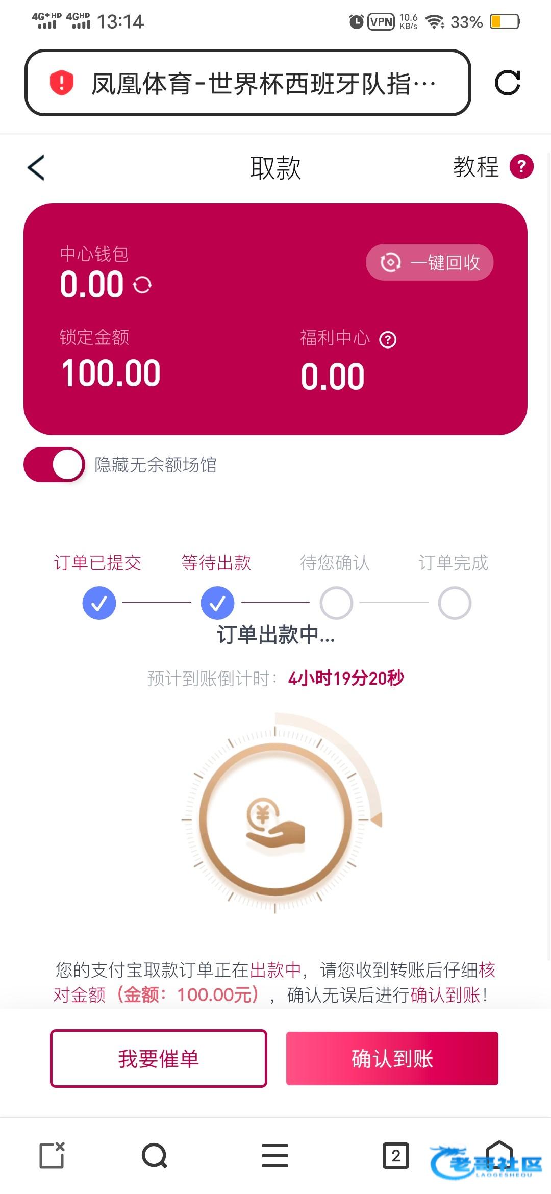 提款100不知道会不会到账,之前好像注册过号了
