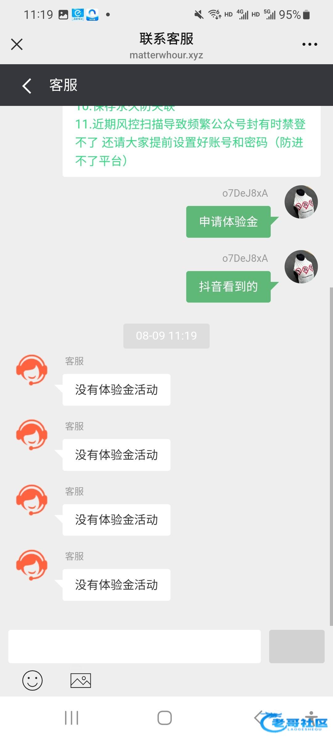 找客服说是抖音看到的领取体验金
