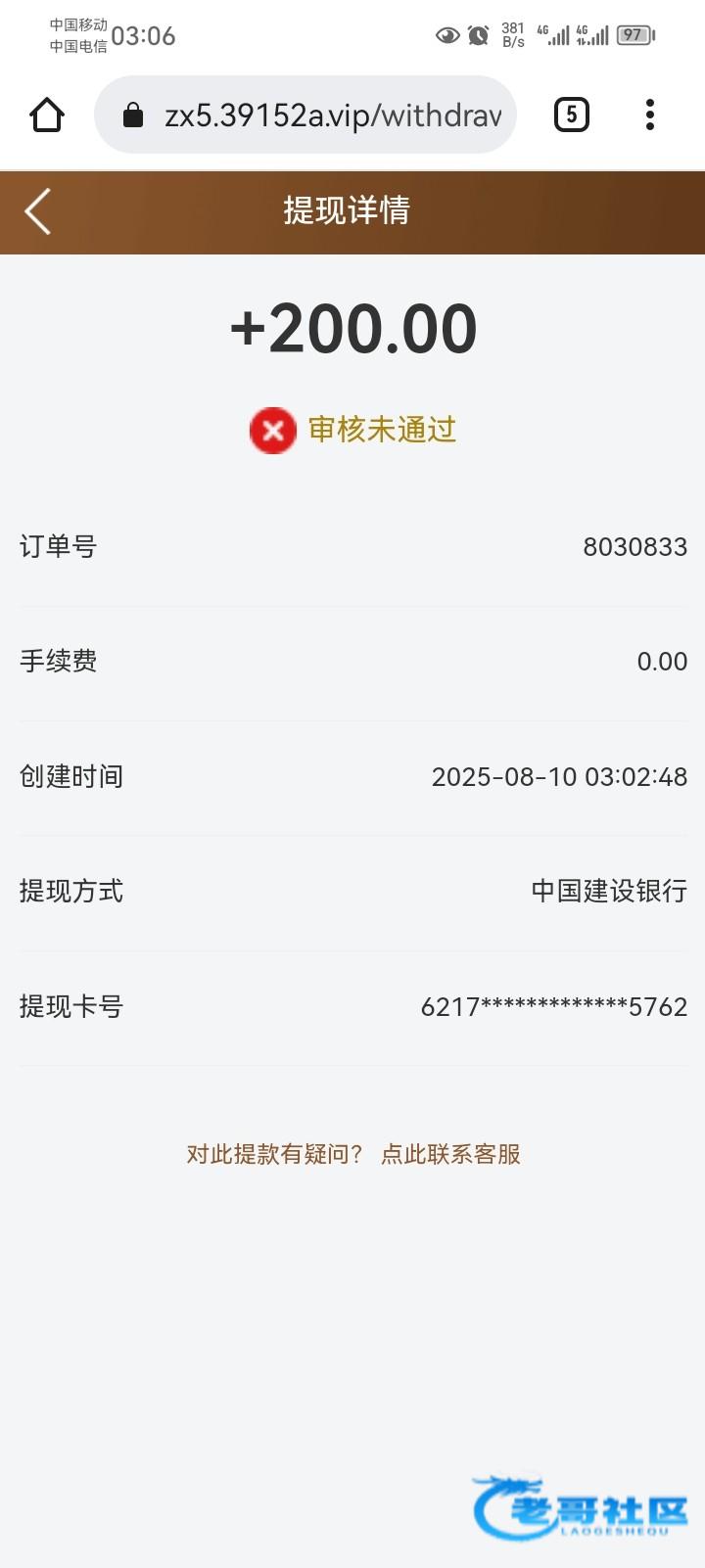 这个台子还可以啊之前提过300送你的彩金打上去的。我开始也以为不给提看论坛结果提现300显示提现中。然后还有三块钱一块钱一拉又给了200后面当欢乐豆打了。服了我自己。