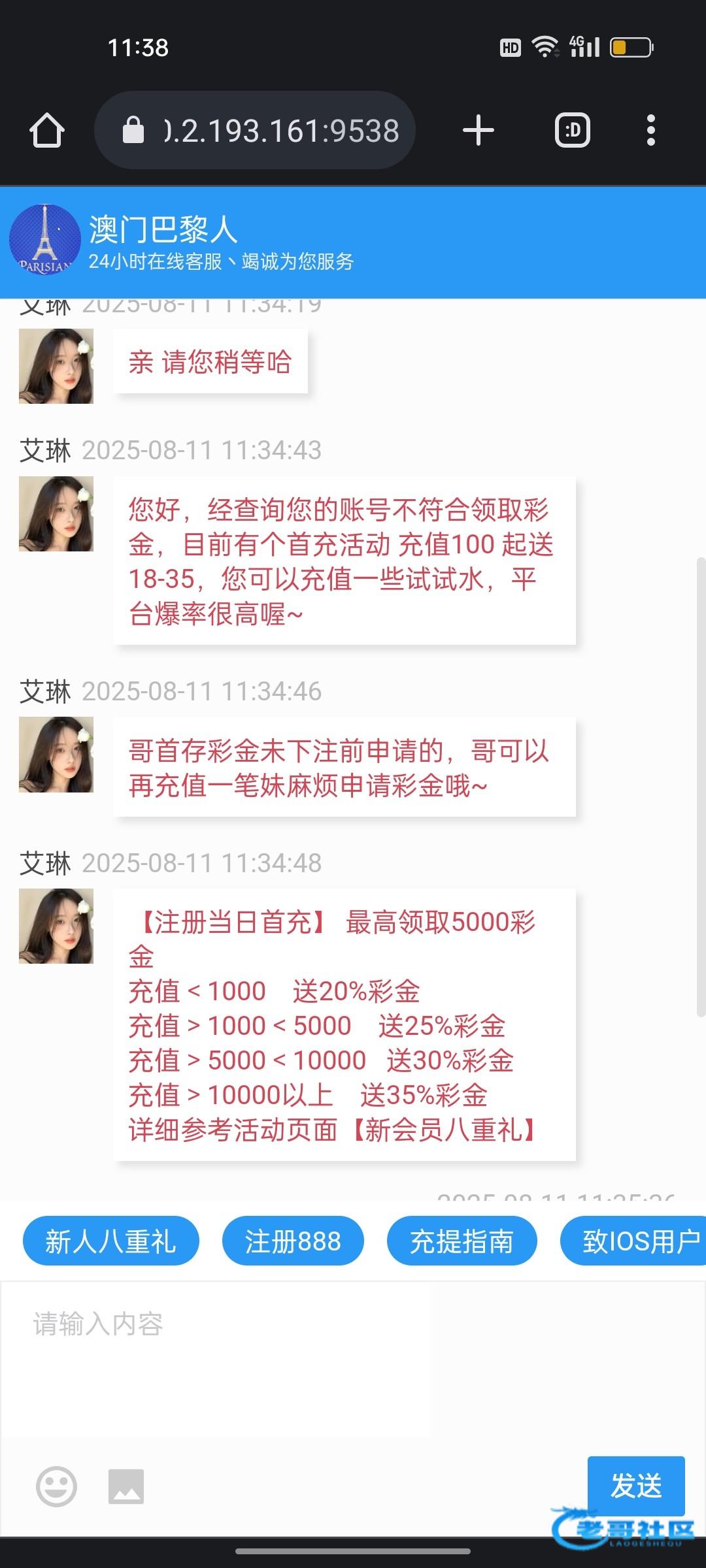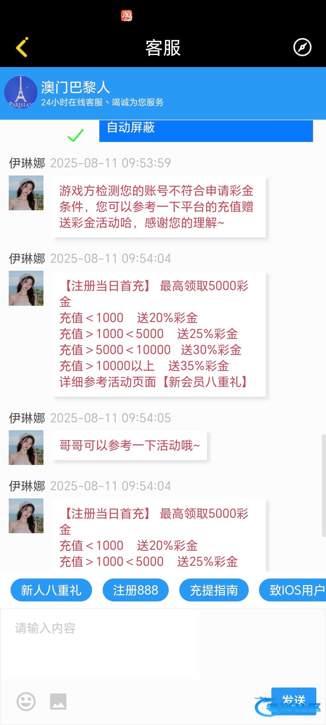 游戏方检测您的账号不符合申请彩金条件,您可以参考一下平台的充值赠送彩金活动哈,感谢您的理解~【注册当日首充】 最高领取5000彩金充值<1000 送20%彩金充值>1000<5000 送25%彩金充值>5000<10000 送30%彩金充值>10000以上 送35%彩金详细参考活动页面【新会员八重礼】哥哥可以参考一下活动哦~