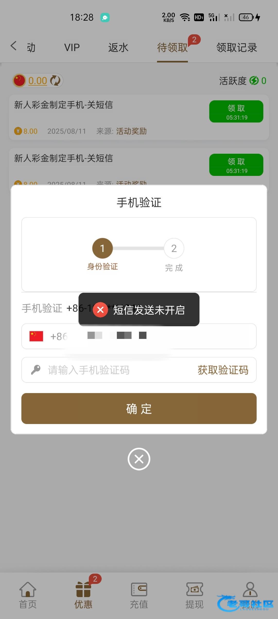 就是个sb平台来的,手机号永远认证不了,发不了短信,然后就领取不了